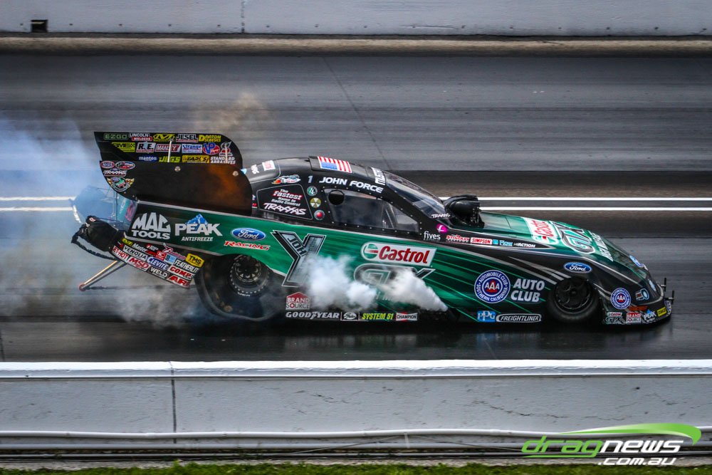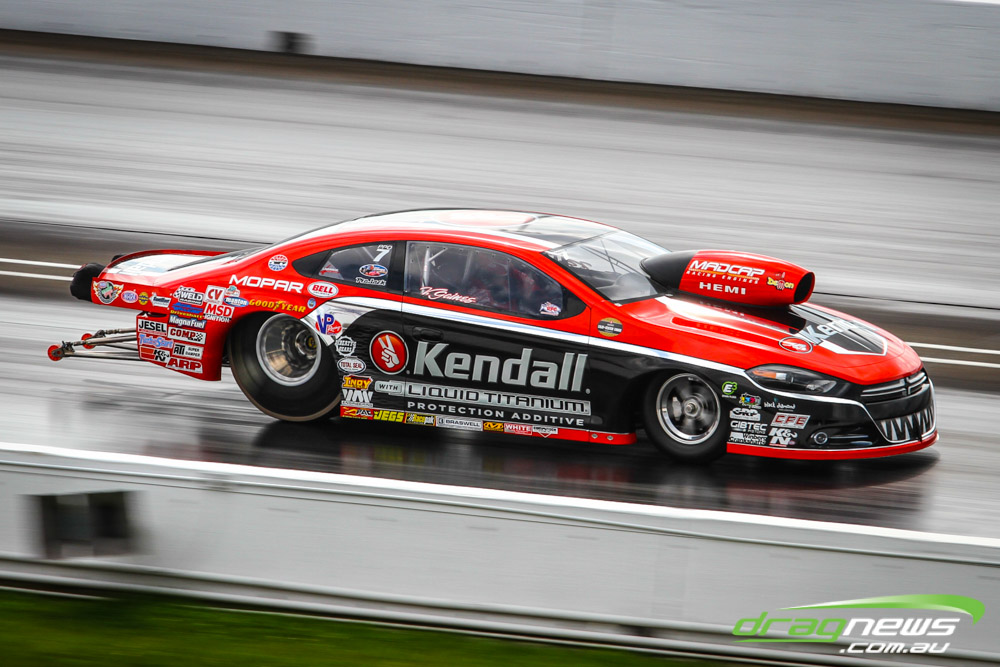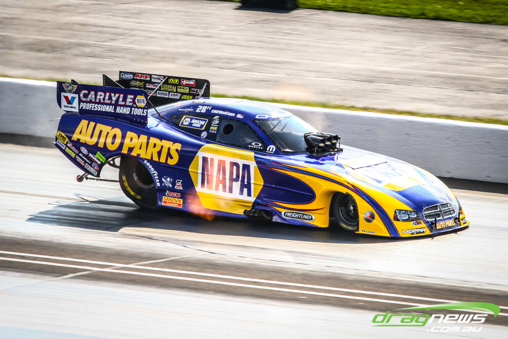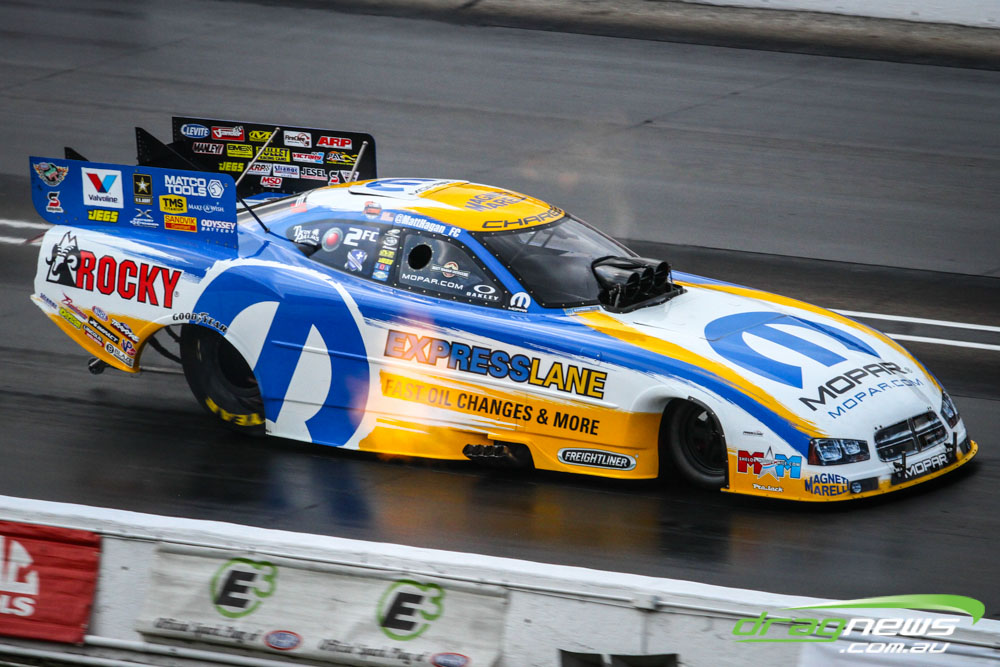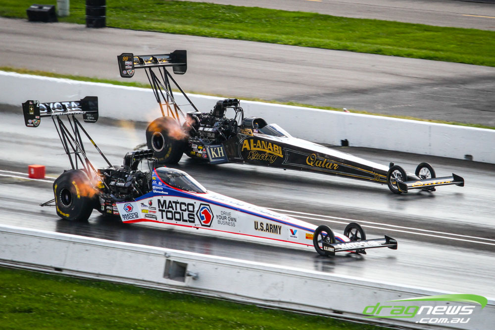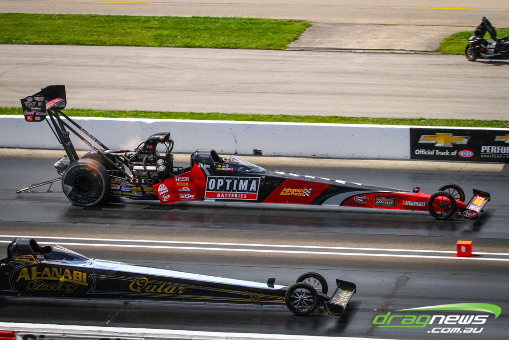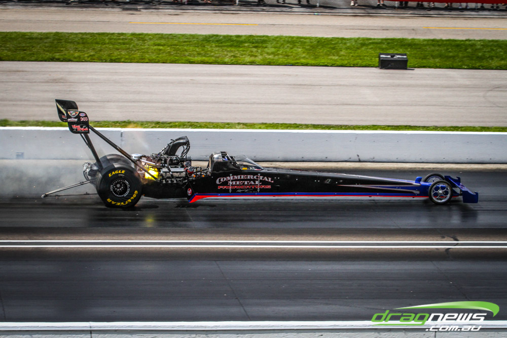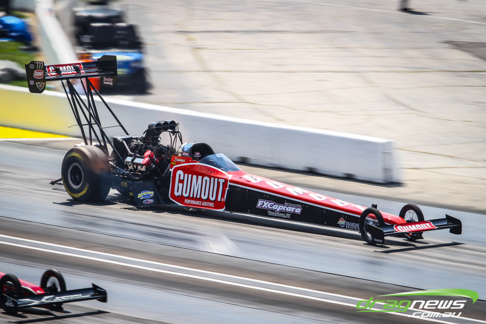 In other Australian news, Steve Harker did not improve from his Saturday time and dropped a position as John Lombardo Jr slotted into second spot. Top Alcohol Funny Car’s last qualifying session was bumped into the night due to rain delays.