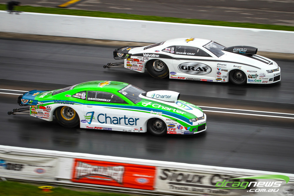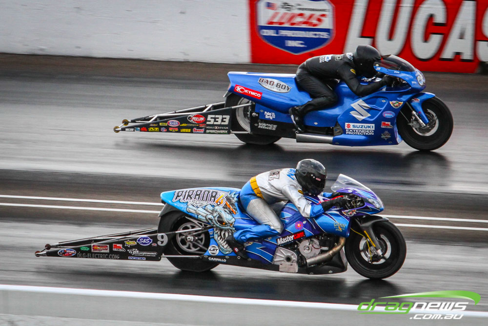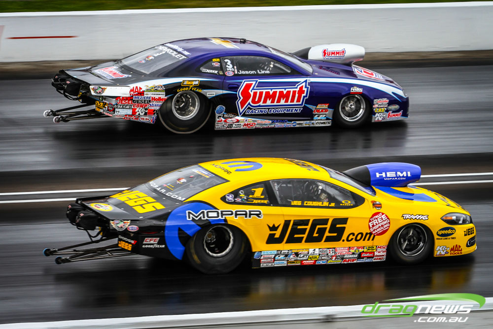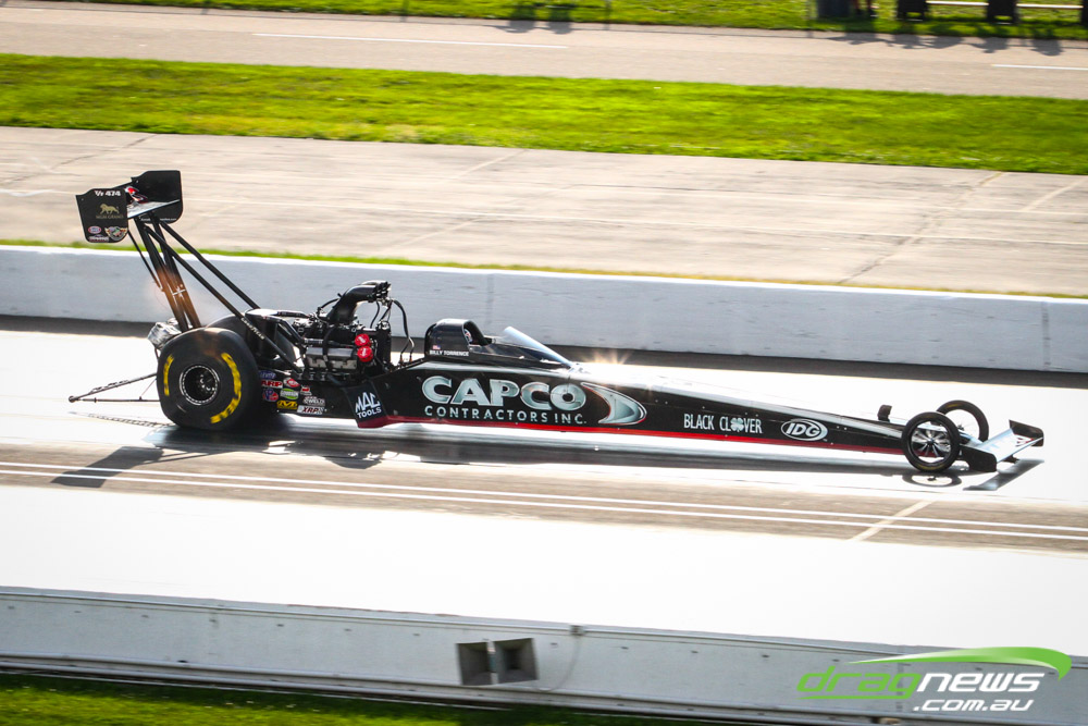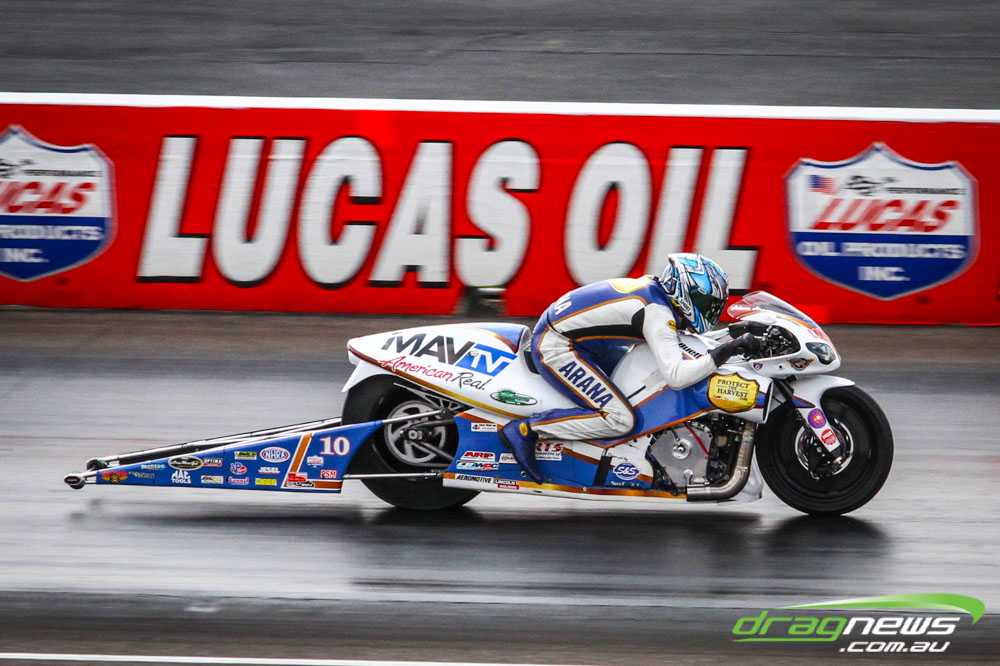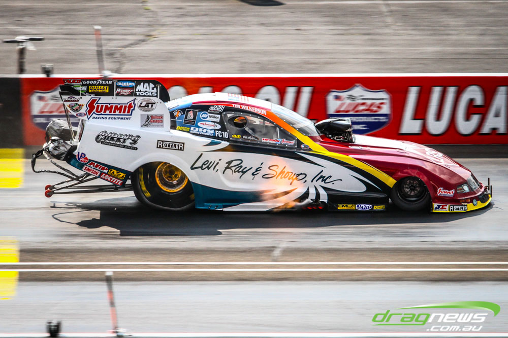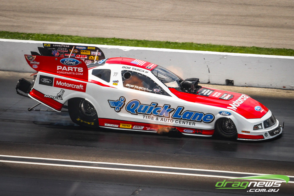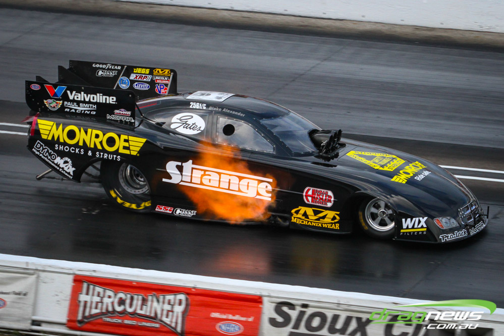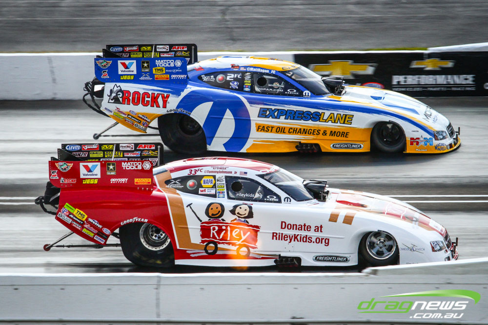 In other Australian news, Steve Harker did not improve from his Saturday time and dropped a position as John Lombardo Jr slotted into second spot. Top Alcohol Funny Car’s last qualifying session was bumped into the night due to rain delays.