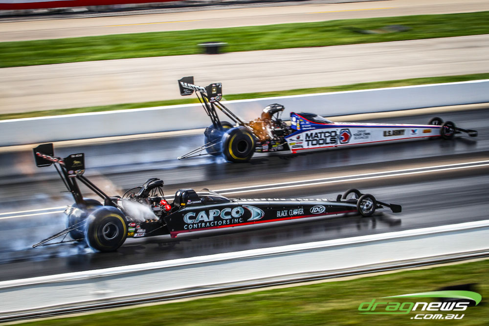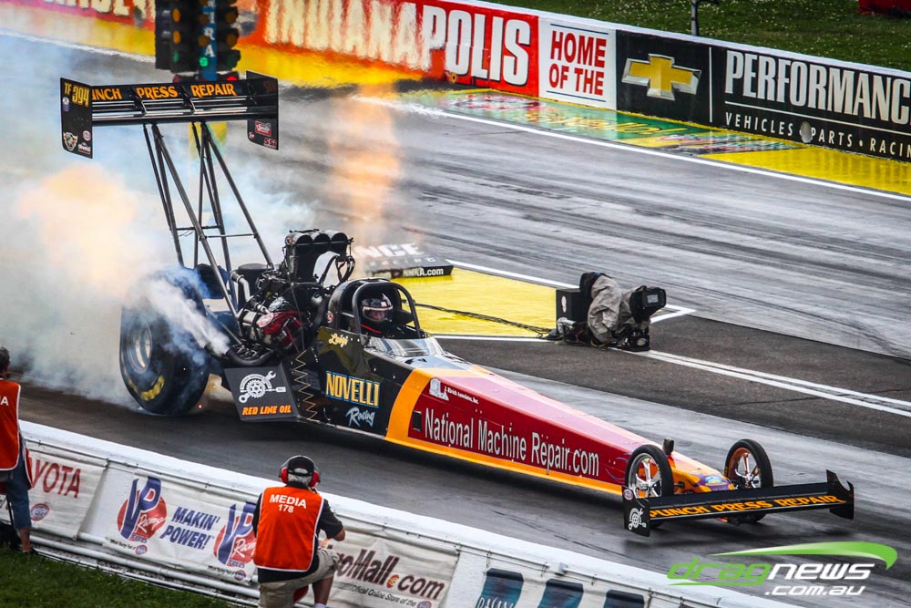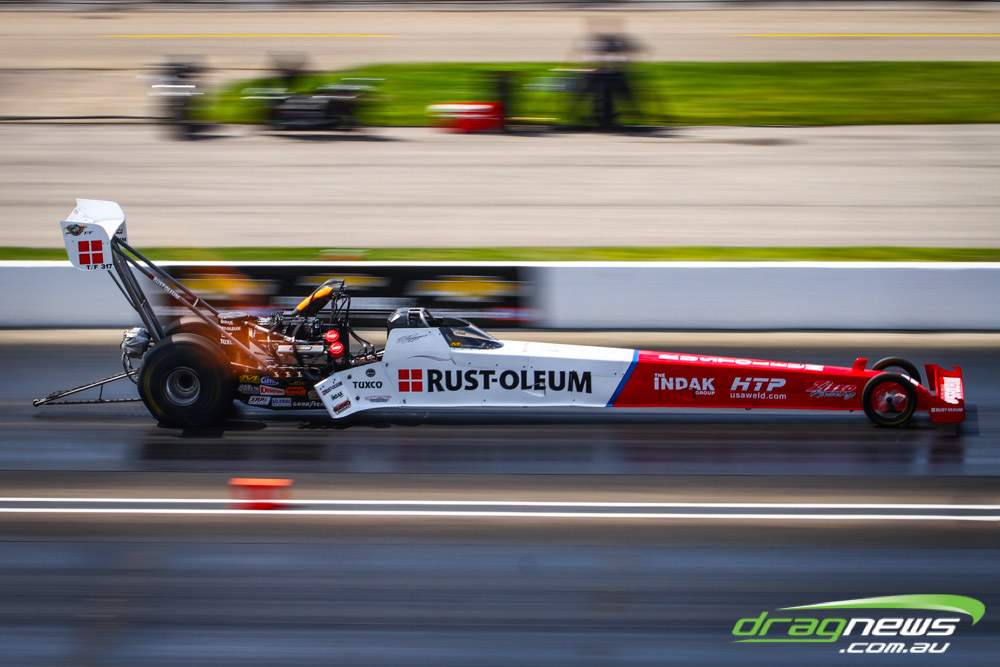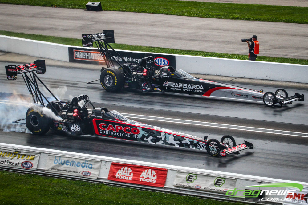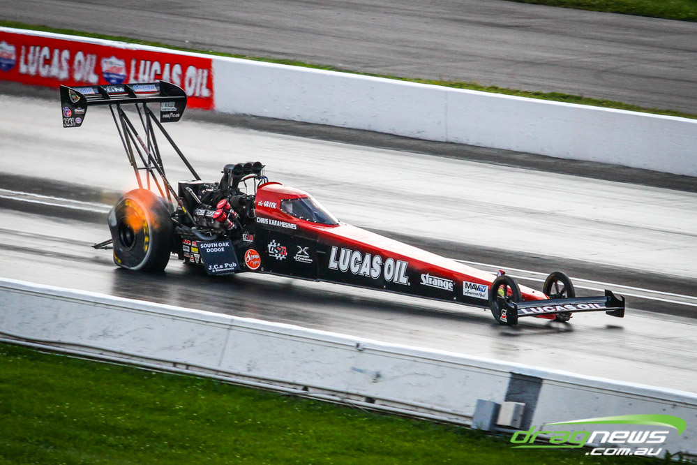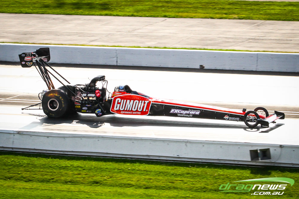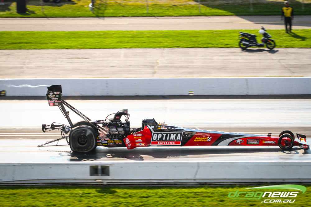 Dom Lagana didn’t improve on his 3.78 from Saturday, with the team tossing a blower belt in the first Sunday session and then smoking the tyres in the second. If there is a downside to the team’s strong qualifying performance it is that they will race points leader Doug Kalitta in round one, though they do have lane choice.