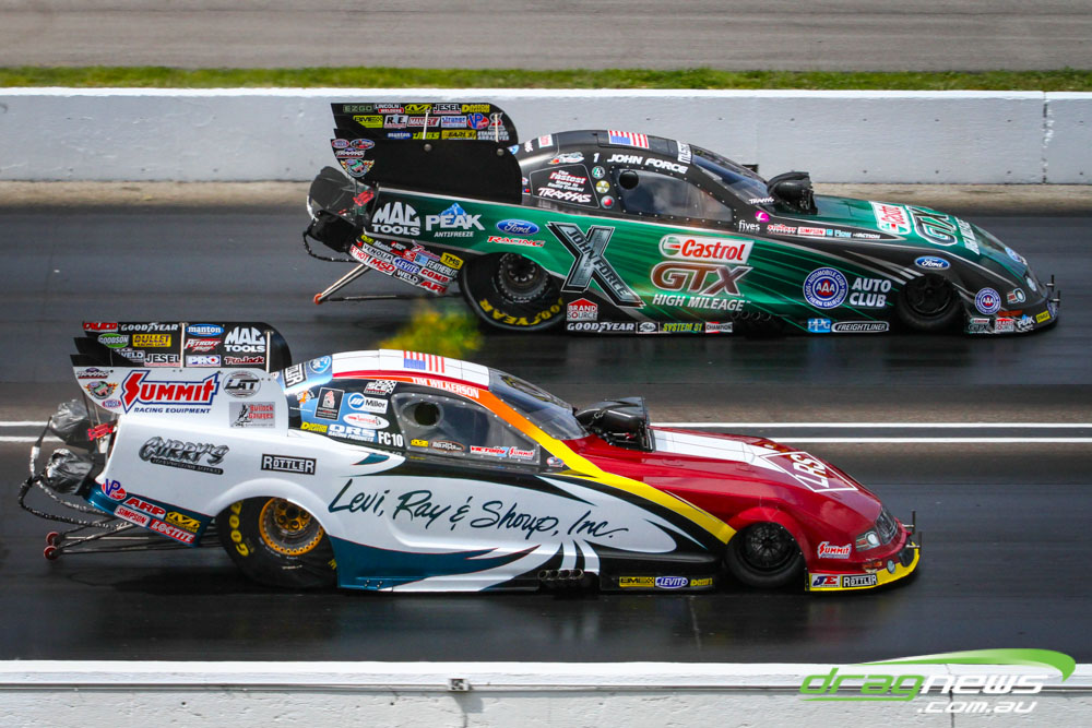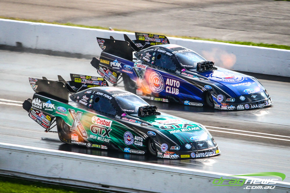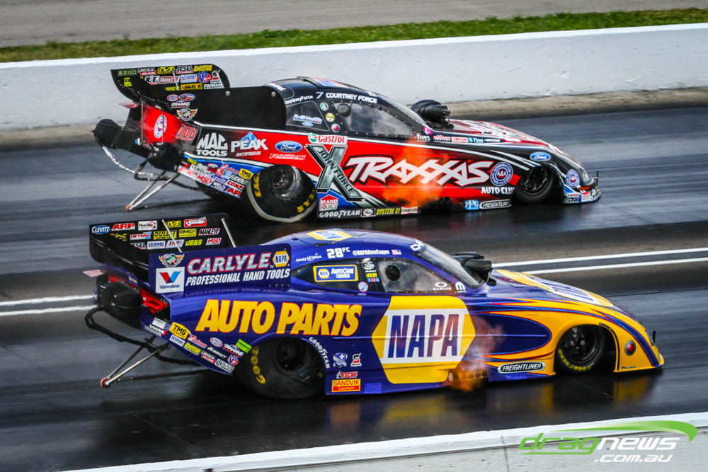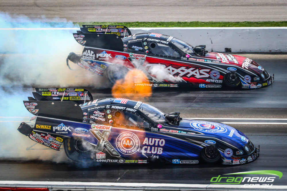 Robert Hight and Courtney Force fought out a pedal fest in the semi finals of the Funny Car Traxxas Shootout, Hight taking the win.