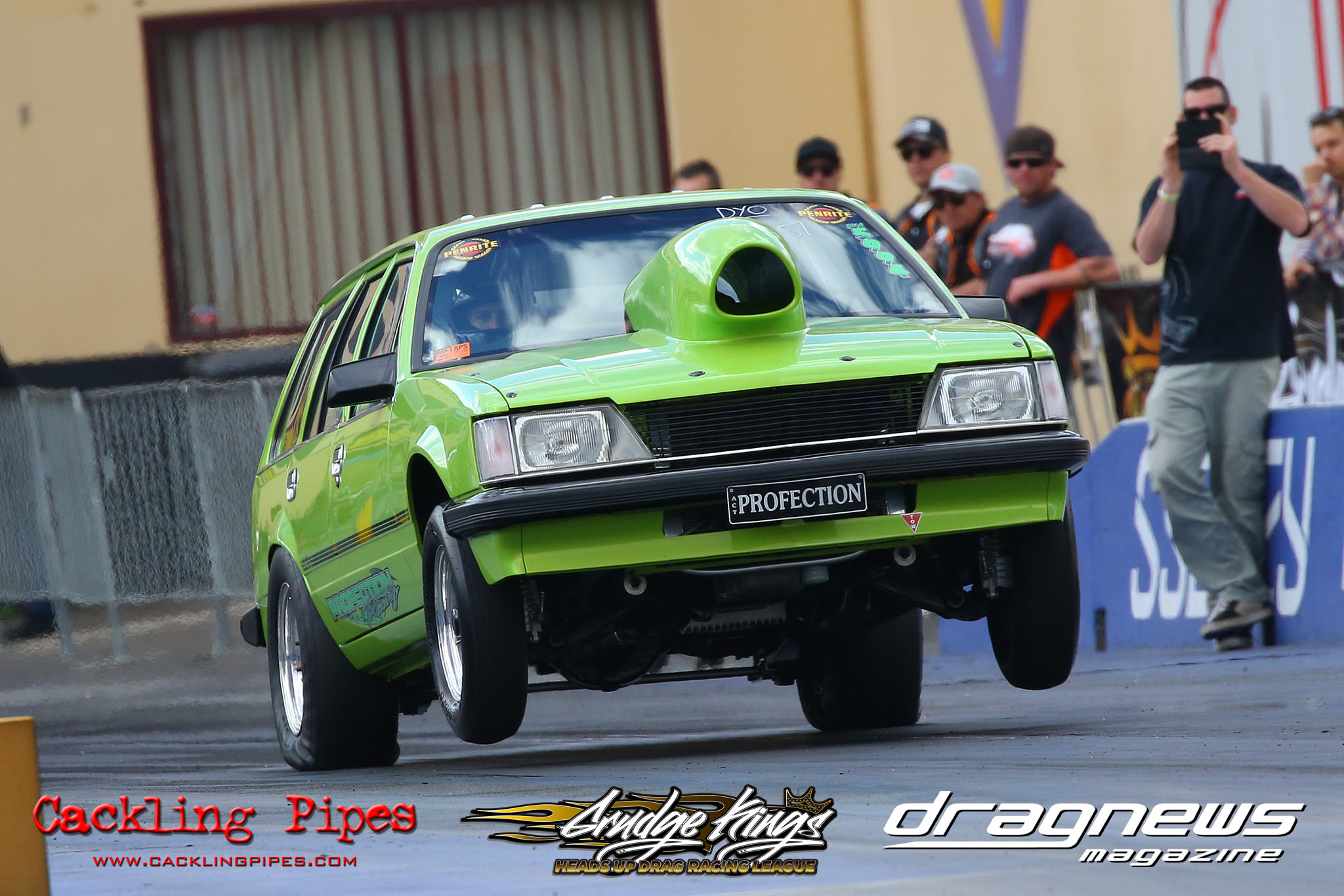Round after round contenders went head to head advancing up the list, and as the day wore on Craige Lewis’ radial tyre twin turbo legit street Cortina was taking names and would find himself racing off against Pro Street icon Johnny Habib in the [DOZ07Z] Torana for the crown.