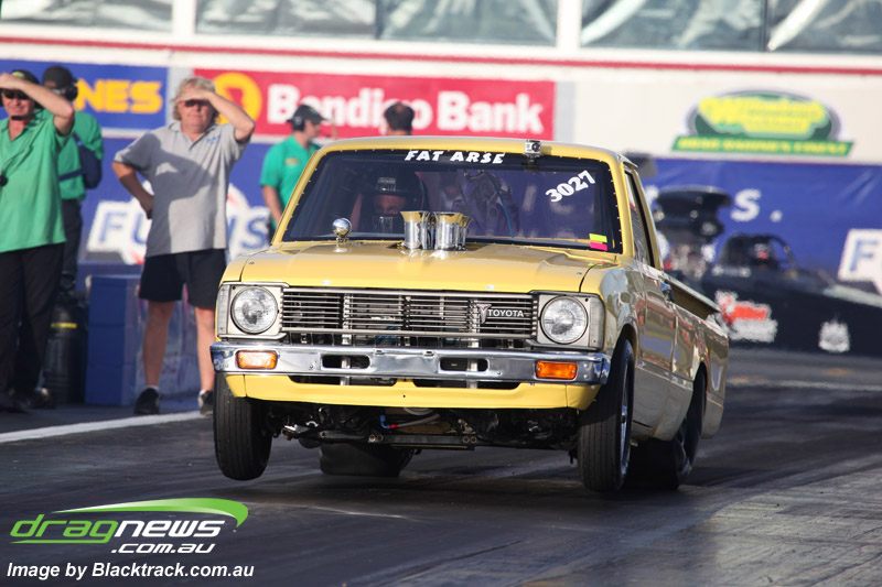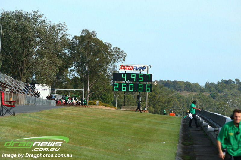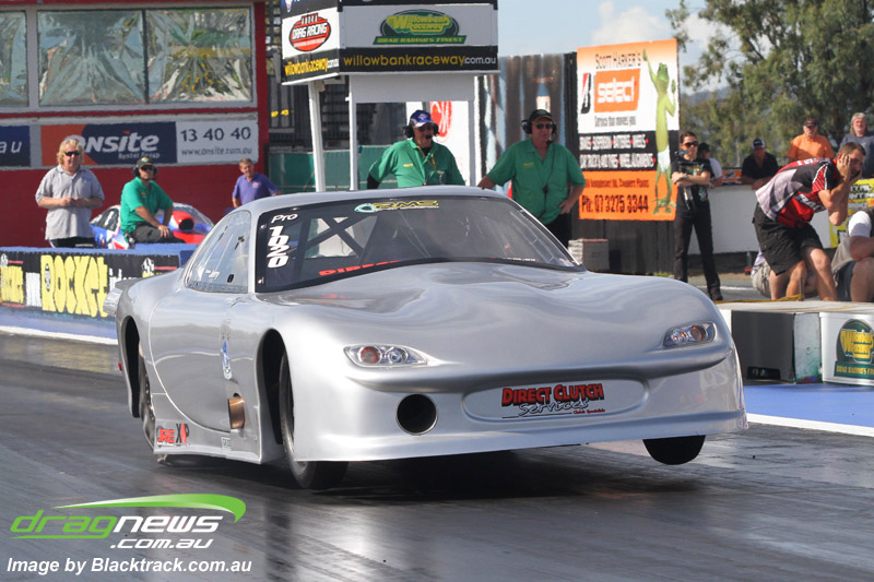 Colin Willshire came out again in his little four cylinder Eclipse and shook and carried the front wheels first up to a 6.88 at 206.51, later eclipsing that (no pun intended) with a 6.81 at 204.11