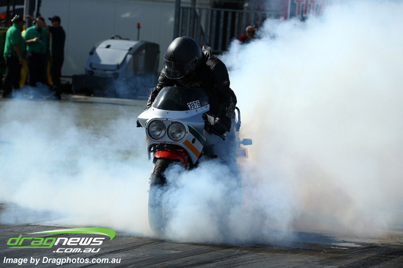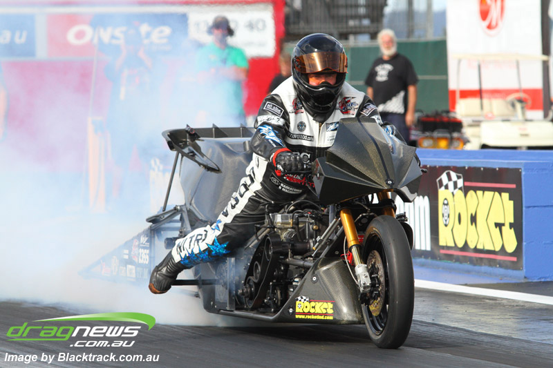 Mark Drew on his new scooter had a wild pass on his first attempt, pedalling multiple times to a 7.72 at a big 203.40, followed up by a 6.60 at 209.43, then carried the front wheel up high past half track to a 6.67 at 214.42. This bike is proving to be an absolute weapon and will definitely be one to watch in the future.
