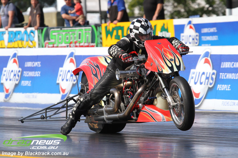 Tyronne Tremayne headed the field for Pro Stock with a first up 6.99 at 196.13 with a 1.003 short time which made the team happy after the engine dramas they had at the recent X Champs. Aaron Tremayne was only just behind with a 7.02 at only 188.81.