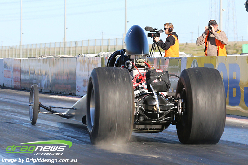 Outside of the Street Outlaw qualifying there was still much more on track action with the like of Craig Munro’s Pro Street HSV. The Addicted Performance 632ci twin turbo monster punching 2000hp is in the shake down phase and just cruised down for an 8.8 second pass, well off its ultimate potential.