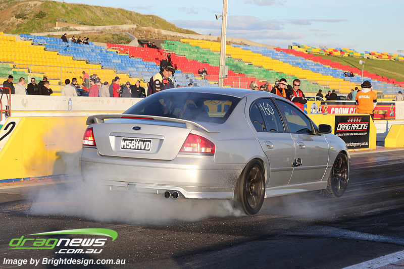 Igor Radojcic steered his ‘daily driven’ Ford XR6 turbo to third spot, equaling Daniel Sharban’s previous 9.44 benchmark, Radojcic was just one mph off taking that second spot.