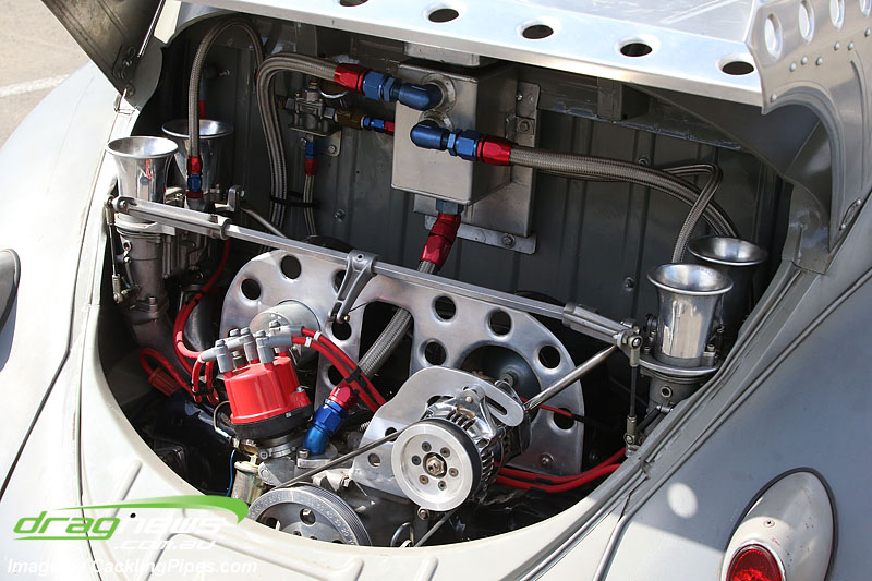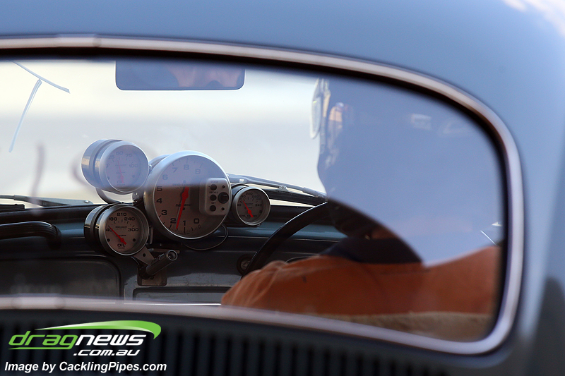 By far the bigggest bracket of the day was the Air Cooled VW class hosting a very wide array of machines. After four epic rounds of eliminations, it was all Beetles left in the semis. Andrew Ermel’s war-inspired car went down fighting in the semi final against Dave Becker.