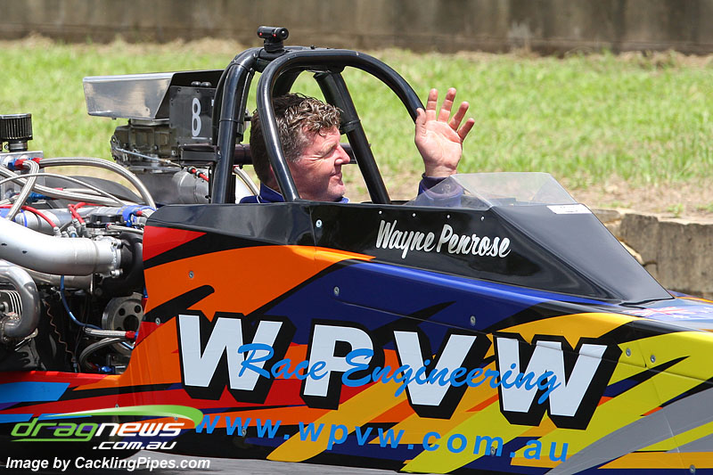 Wayne Penrose went 9.27 in his unique turbocharged dragster.