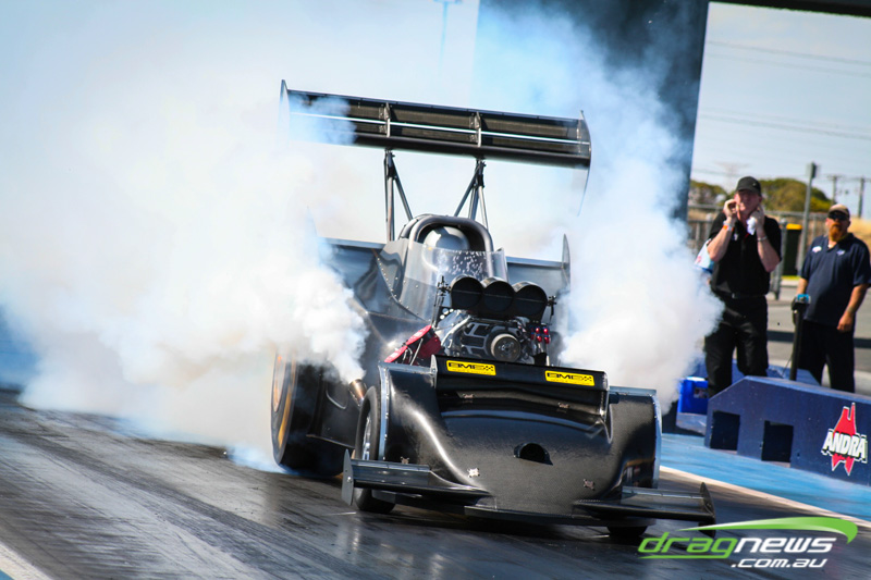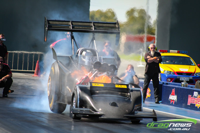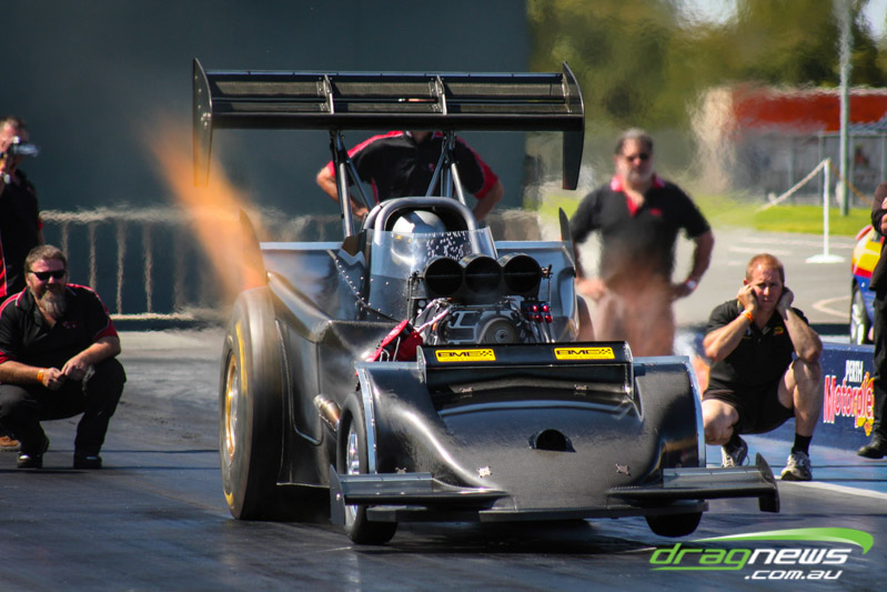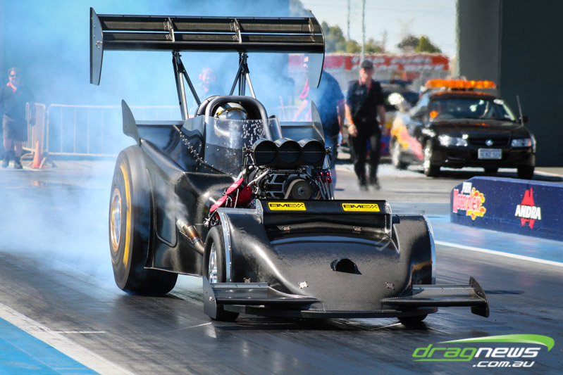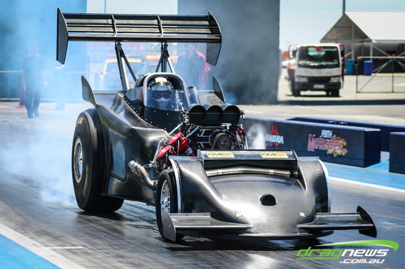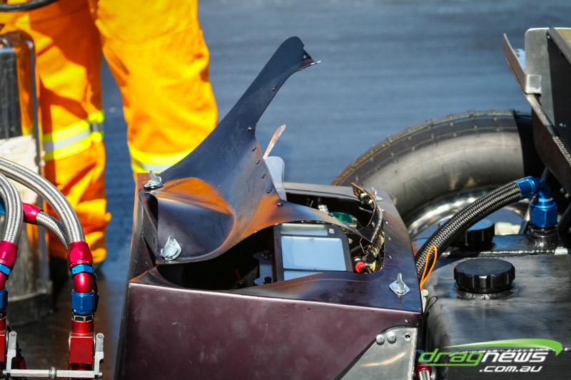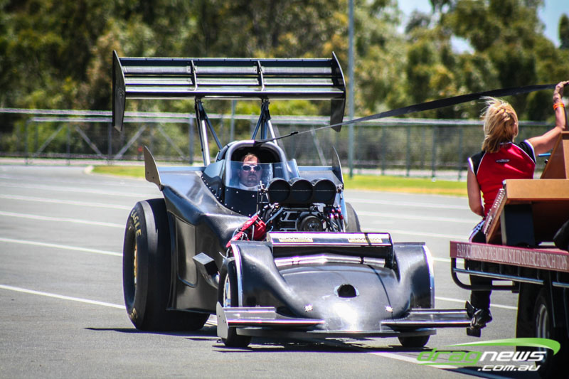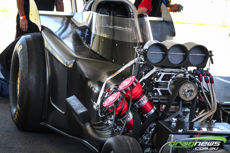 It made all but one appearance, at a private test day at Perth Motorplex, making just two passes. It was built with the intention of being the world’s quickest altered. The last run was a bit of a blow for Sheehan, with the car smoking the tyres on the hit and banging the supercharger pretty severely.