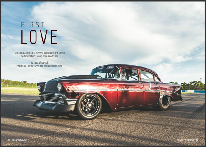 Daniel Basukoski’s slamming 56 Chev is one of the most unique cars in Pro Radial competition right now, he takes us through its life first as a street car all the way to becoming a serious shoebox doorslammer inspired by the Wild Bunch, Pro Street and Radial!