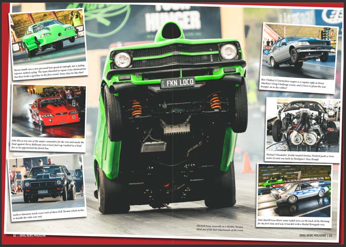 With Pro Line 481X power up front and a three quarter chassis, this coupe is one of the country’s best engineered rides. We also hear from Gauci’s team mate Carl Cox about his freshly imported Pro Mod ready to mix it up in the five second zone!