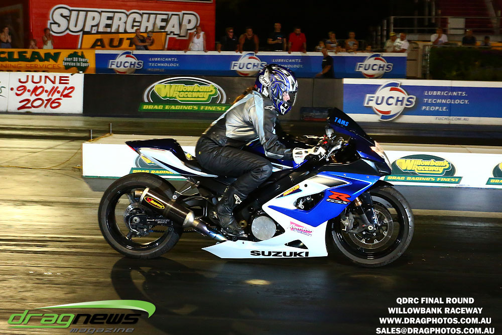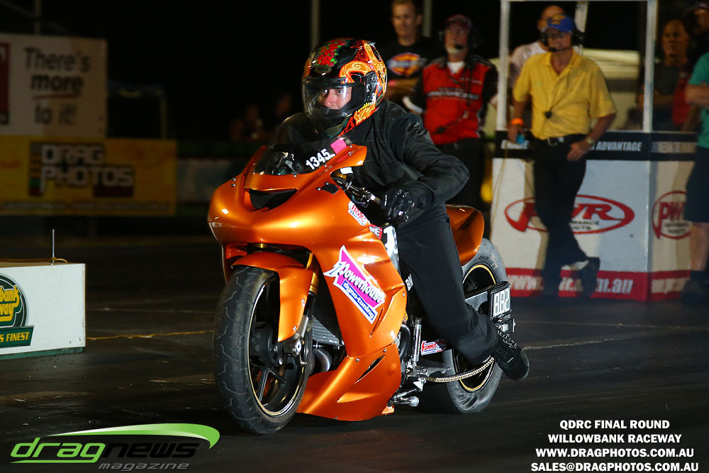Josh Fletcher (Donnelly Blasting Services QDRC Outlaws), Tony Bellert (QDRC SuperComp), Kellie Kidd (Knijff Earthmoving Modified), Tony Whyatt (Powercruise Super Sedan), Lucas Holz (Prime Signs/Speed Elec Super Street), Tammy Goldthorpe (Modified Bike), Tim Barron (Wallace Bishop Loyal Watches Junior Dragster) and David Gauldie (Super Gas) were crowned QDRC champions this evening courtesy of their results in today’s final round.