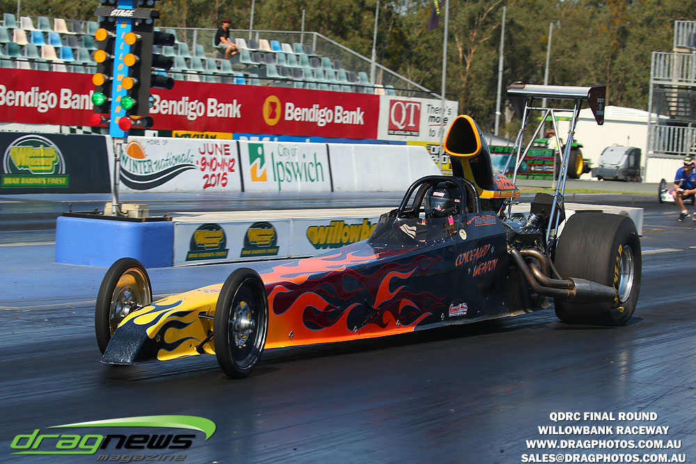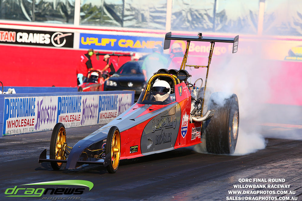 Eight Queensland Drag Racing Champions have been found amid scorching Saturday temperatures at Willowbank Raceway, following a frenetic day of eliminations-style racing for the final round of the QDRC for 2015.
