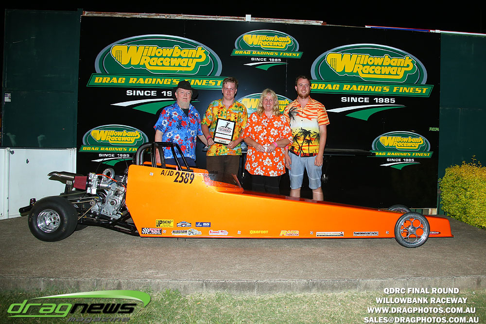 “It is great to win the event tonight and also to take out back to back QDRC championships – we are super excited. It has been 10 years in Junior Dragster, and I have to thank mum and dad for being there and for supporting me, as well as all of the other races and to the track for the events they put on,” said Barron.