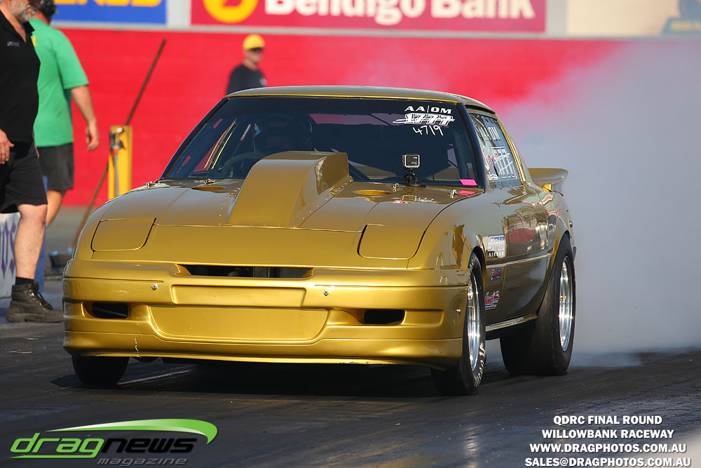 The 40 degree temperatures did not stop a few cars testing at the Queensland Drag Racing Championship final at Willowbank Raceway | Drag Racing's Finest with Mark Smiths' blown Monaro laying down his first 7 second pass, Nikki Hepburn upping the boost a bit more in her 1FZ Toyota 86 to low 8's, Lincoln Jonisson's blown Commodore ute with TS/AA on the side of the car licensing to a 7.9 and Goldmember out doing some laps with the RX-7 going oh so close to the magic double tonne with a best of 199mph.