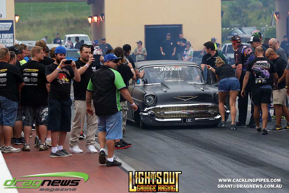 Lutz and the fan were left shattered though when the ’57 lived up to its evil ways punching out a couple of rods on its first burnout. Never the less racing went on and Lutz had more time to spend with more fans wanting selfies.