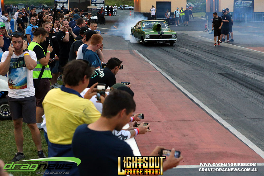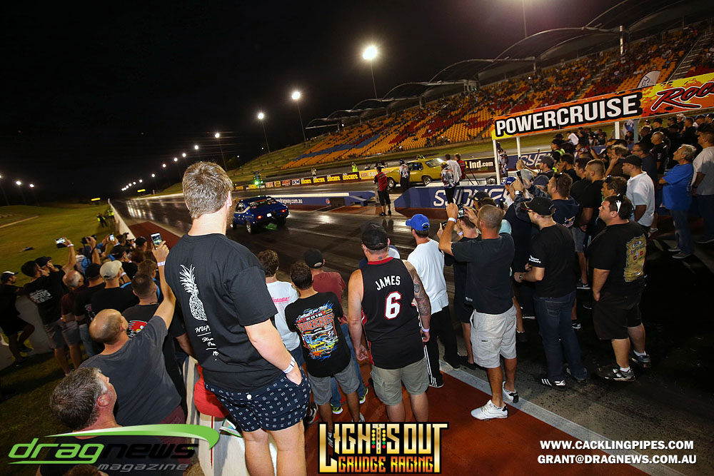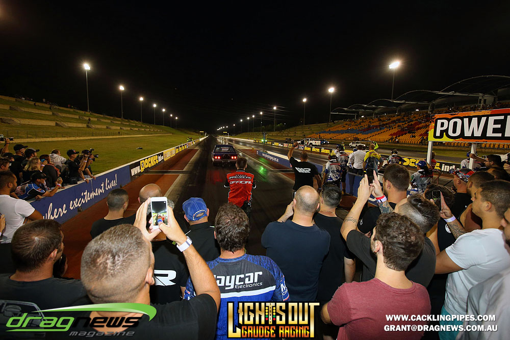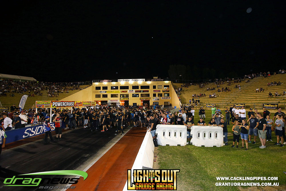 The Lights Out phenomenon shifted to Sydney Dragway venue bringing in several thousand spectators to witness drag racing striped to its bare bones.