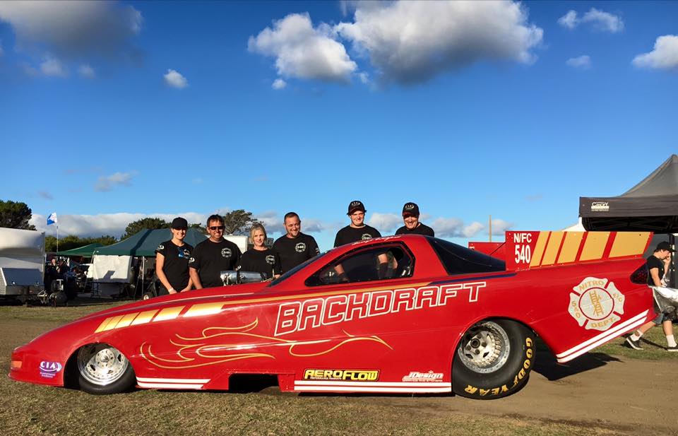Darryl Walford unveiled “Backdraft”, it is great to that name back on drag strips in Australia – unfortunately new car gremlins bit the team at this event. (Pic – Darryl Walford Facebook)