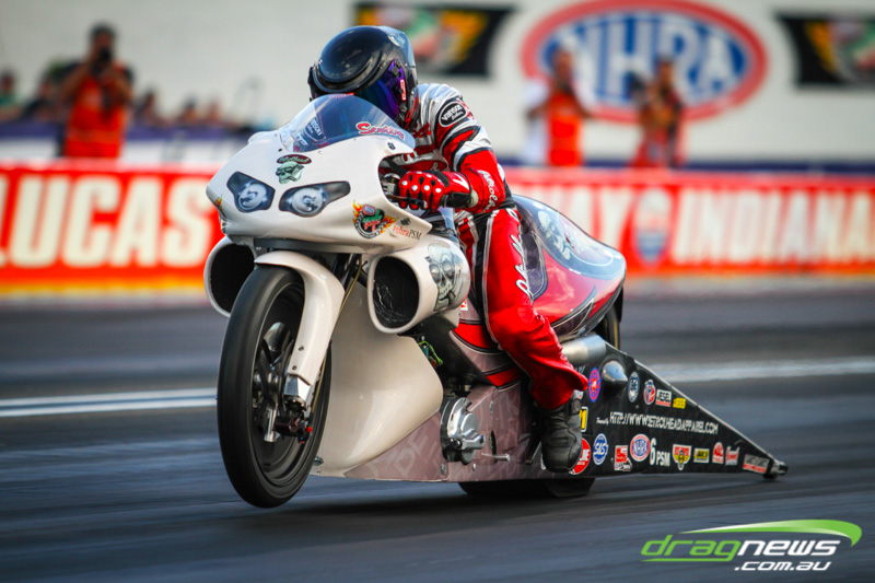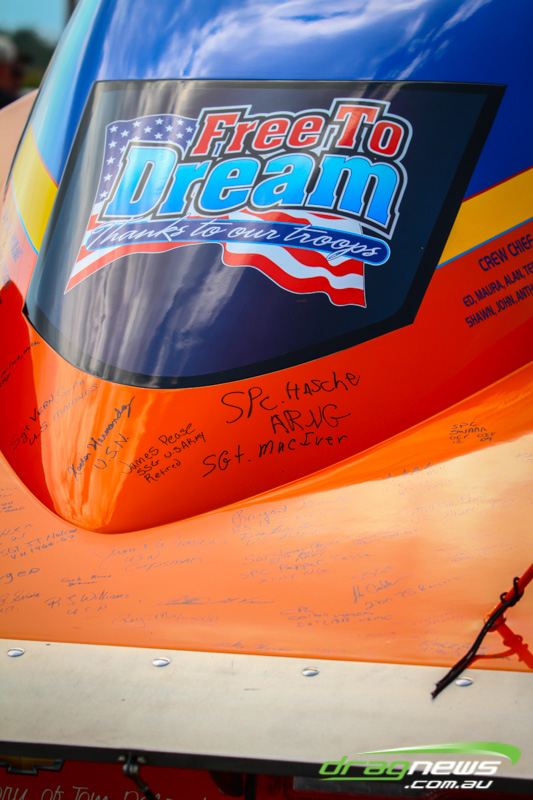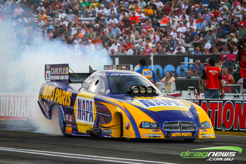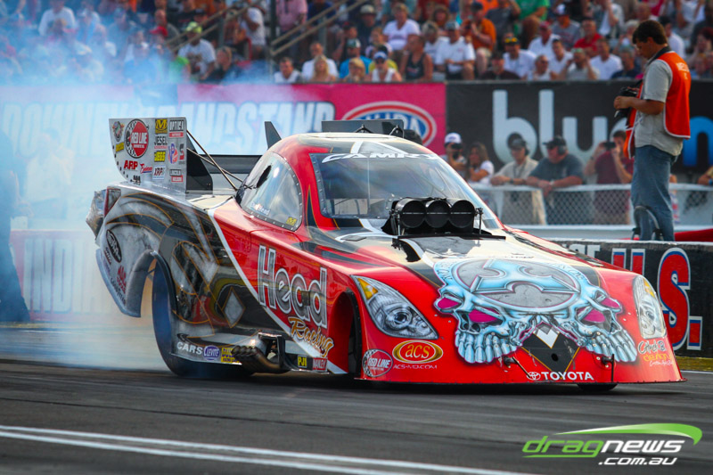 Another sight unique for Australian spectators is that of injected nitro dragsters. The sound and smell is certainly unusual in a class still named Top Alcohol.