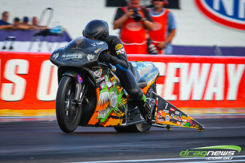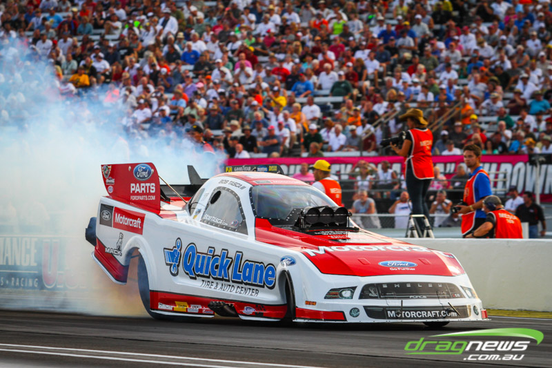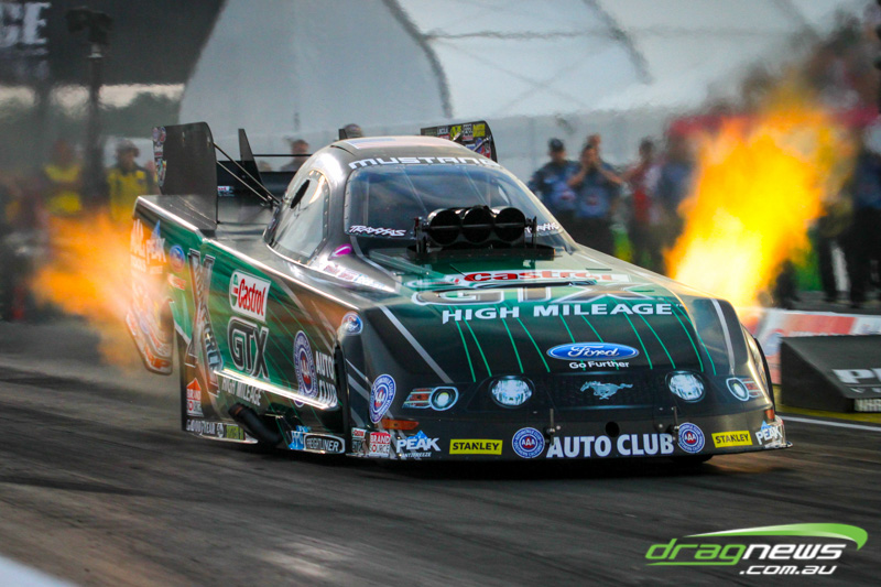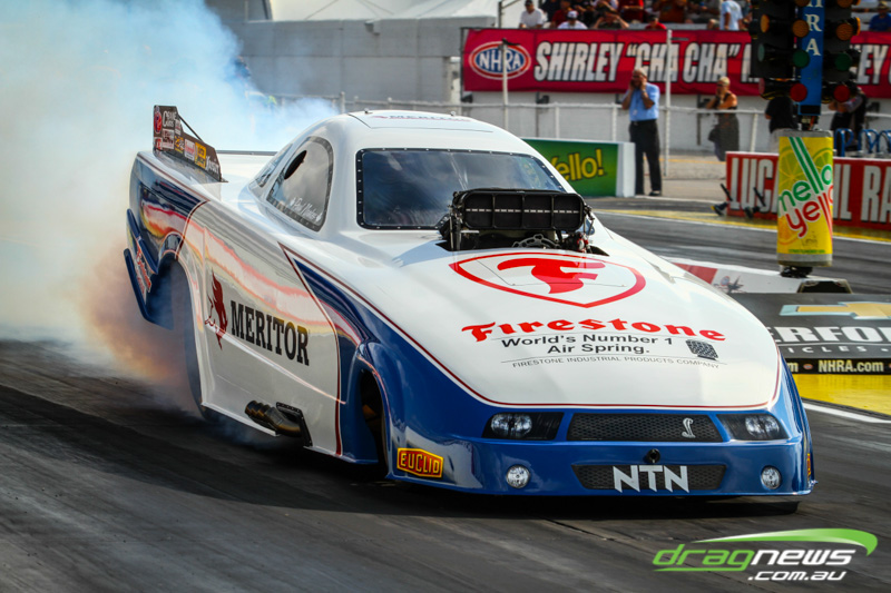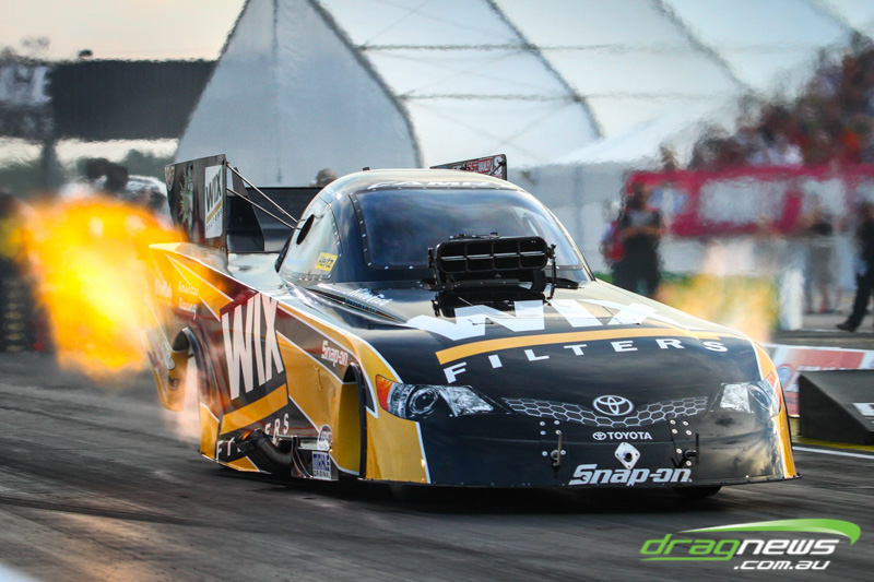 Adelaide boy Richie Crampton is adapting to life as a professional Top Fuel driver well. A 4.529 was nothing to write home about in the only session of Top Fuel qualifying but there is plenty of time left for improvement in the weekend yet. We spoke with Crampton today for an extended feature article – keep an eye out for it soon. He said he put a lot of pressure on himself as a driver, though his team has been nothing but supportive as he continues to learn in his rookie year.