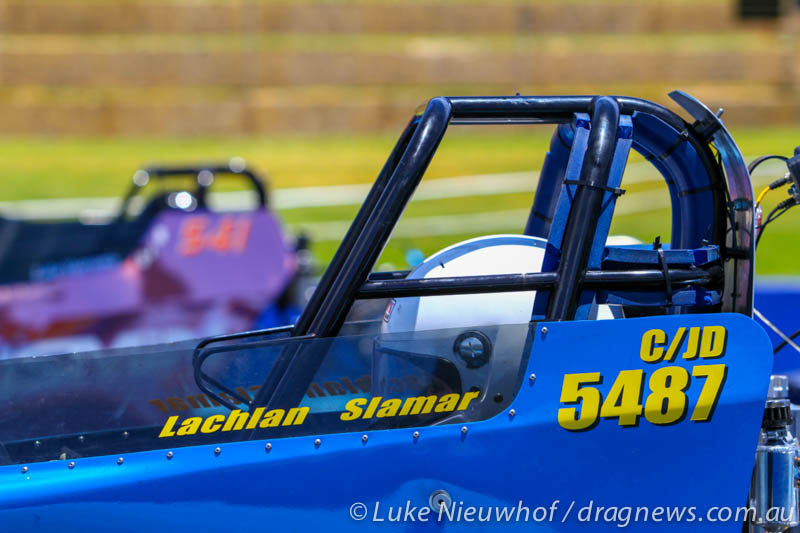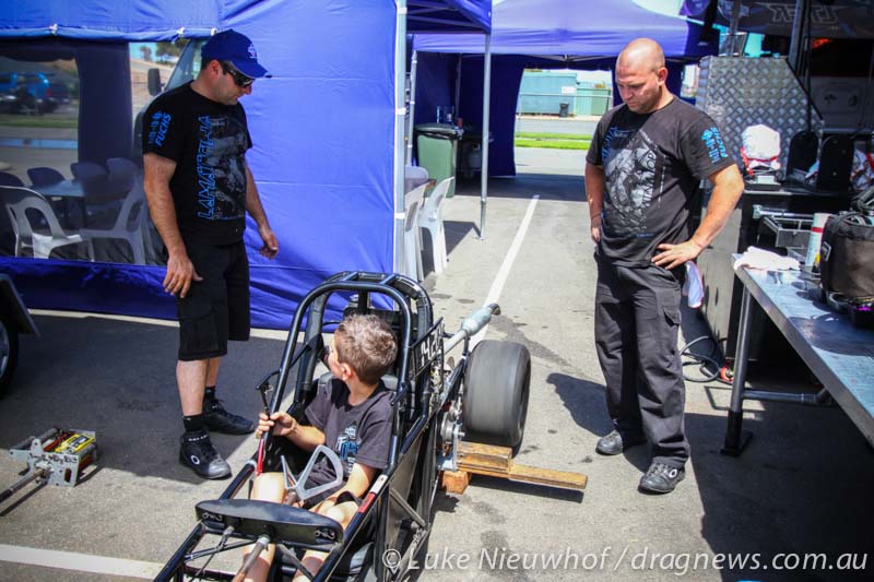 Lachlan Slamar has plenty of room to grow into his Junior Dragster.