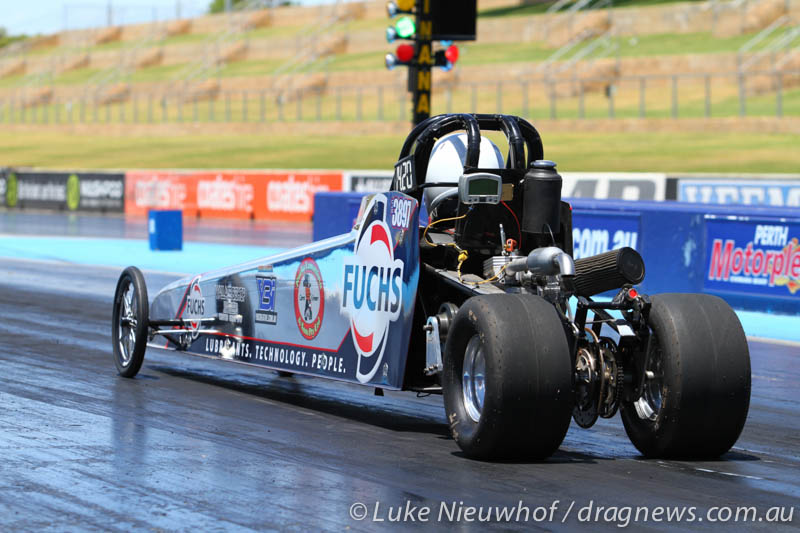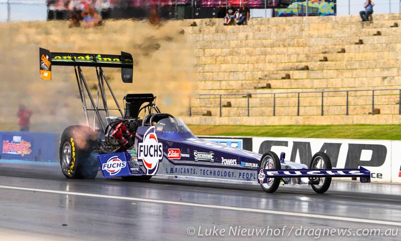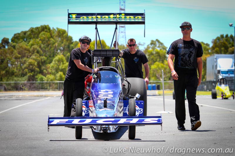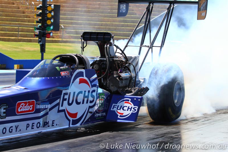 The Fuchs team were not the only Top Fuel team on the premises with Mark Sheehan also intending to test, however dramas in the pits meant they were unable to make a pass.