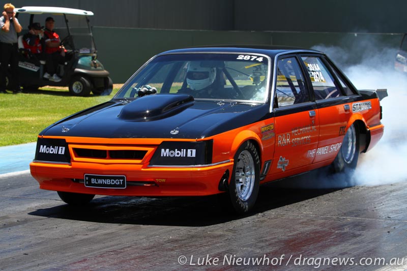 Troy Slamar surprised all with a Pontiac GTO Super Sedan rolling on out, a swap from his usual Ford FG Falcon.