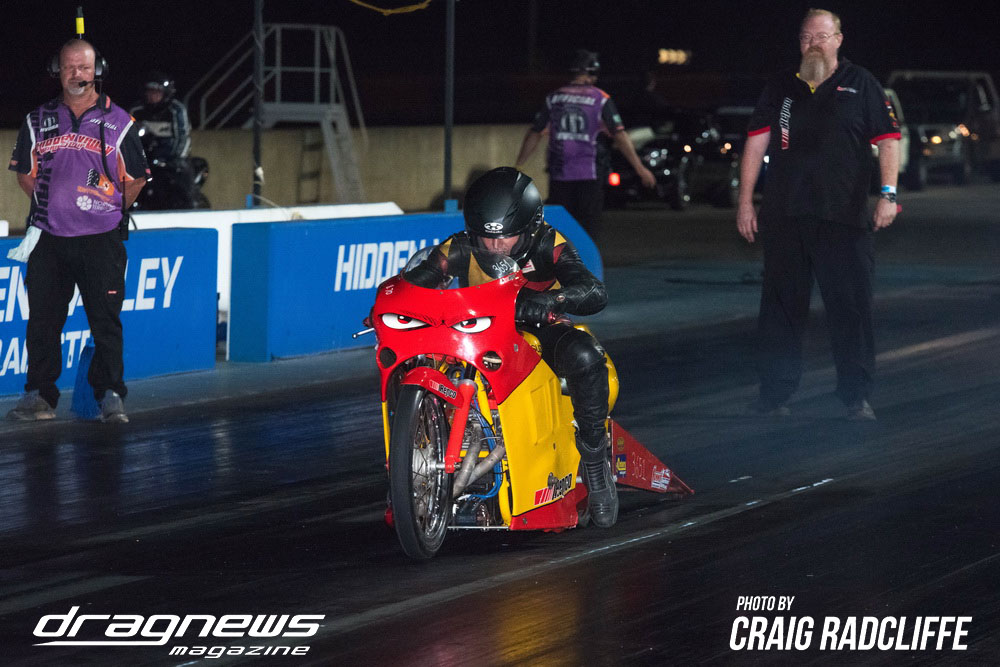 Mark Tattingham let the clutch out 7 thou too early in the Street Bike final giving Andrew Reid the win at the tree.