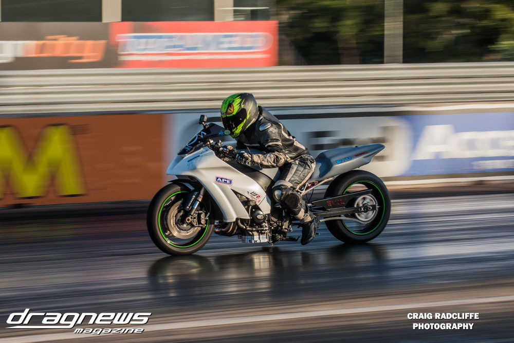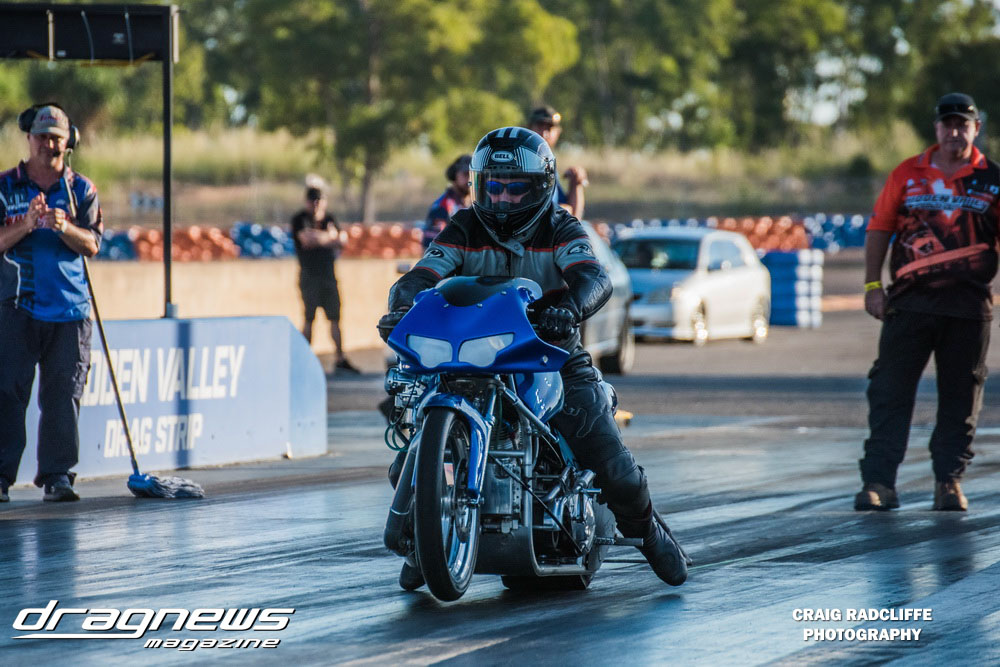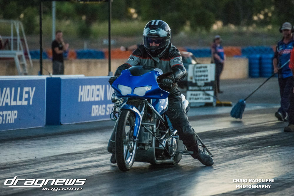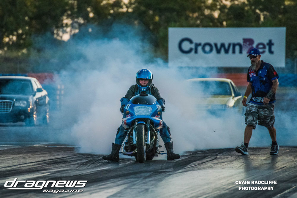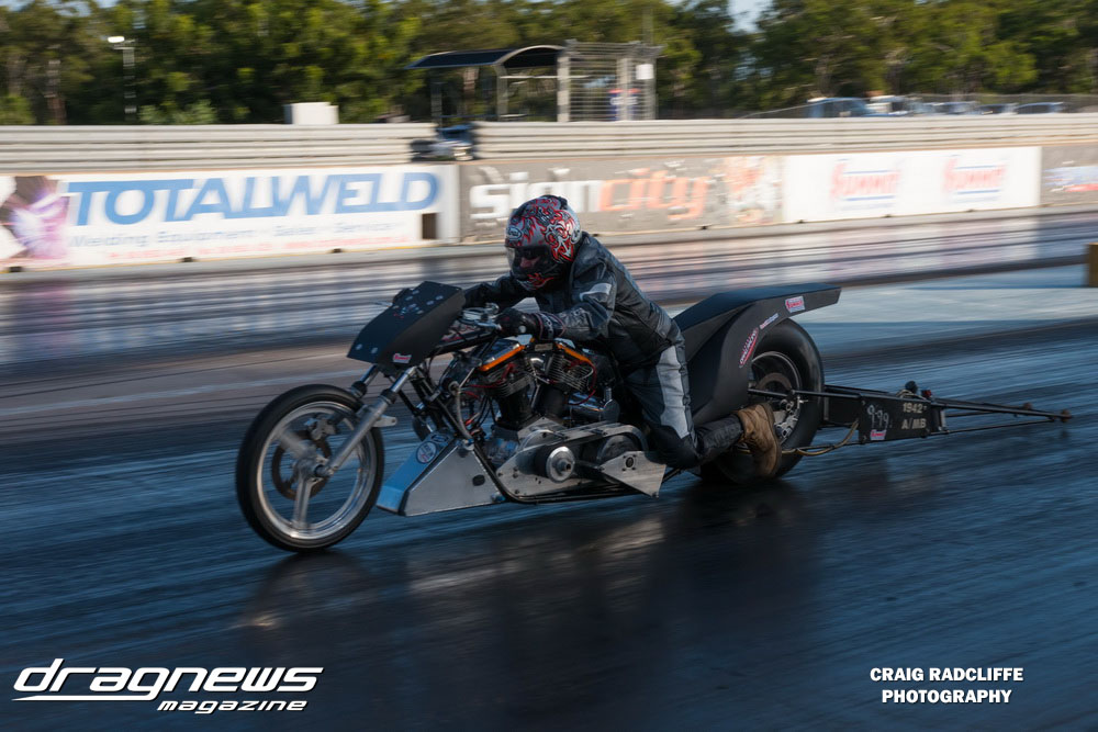 Heath Costello got it done in round one in the Modified Bike Final letting the clutch out on his Harley with a cracking .012 reaction to defeat Tony Clark. Neither could back up a final round appearance in the following championship event, with Dean Hearsy taking the trophy with a 10.18 on a 10.10 against Mark Tattingham.