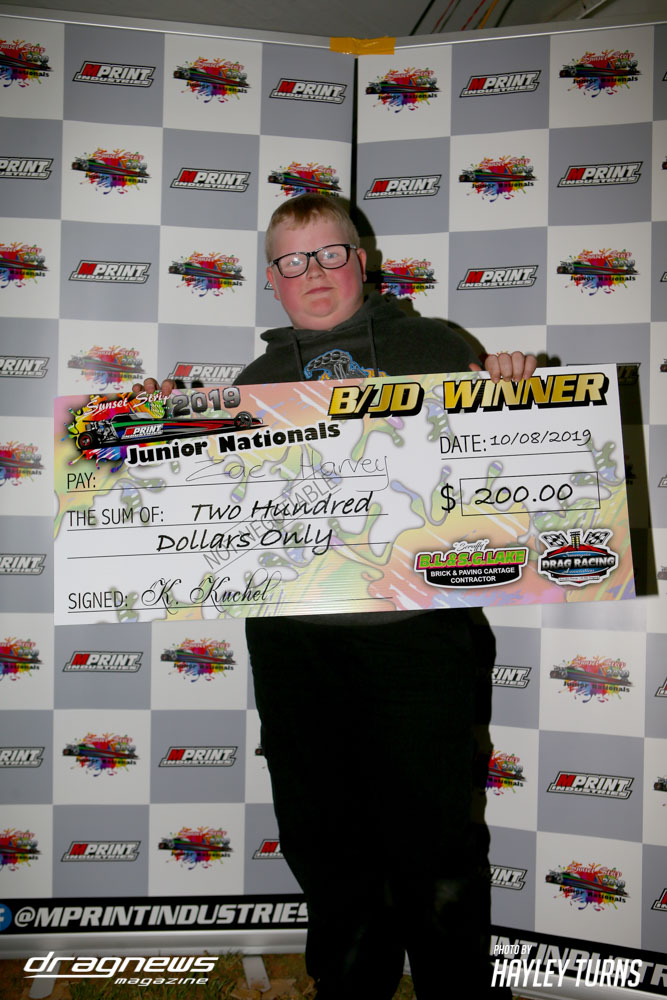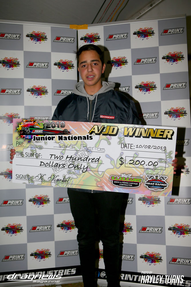The Junior Dragster Nationals featured three separate brackets for A/JDs, B/JDs and C/JDs on day one. Jake Berias took out the A division, with Zac Harvey claiming B while Alex Rottenbury won in C.