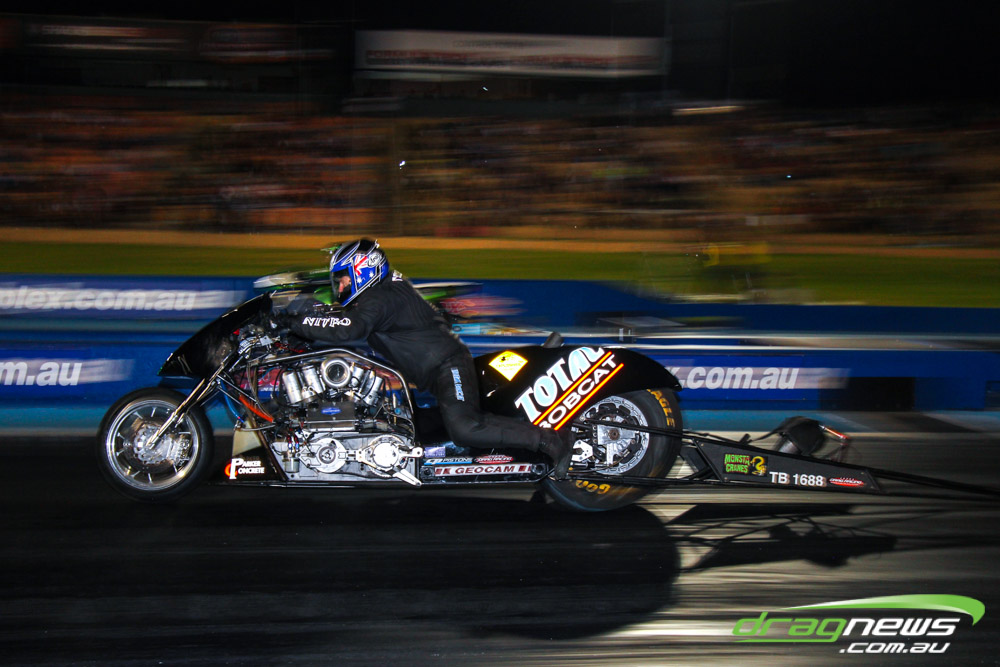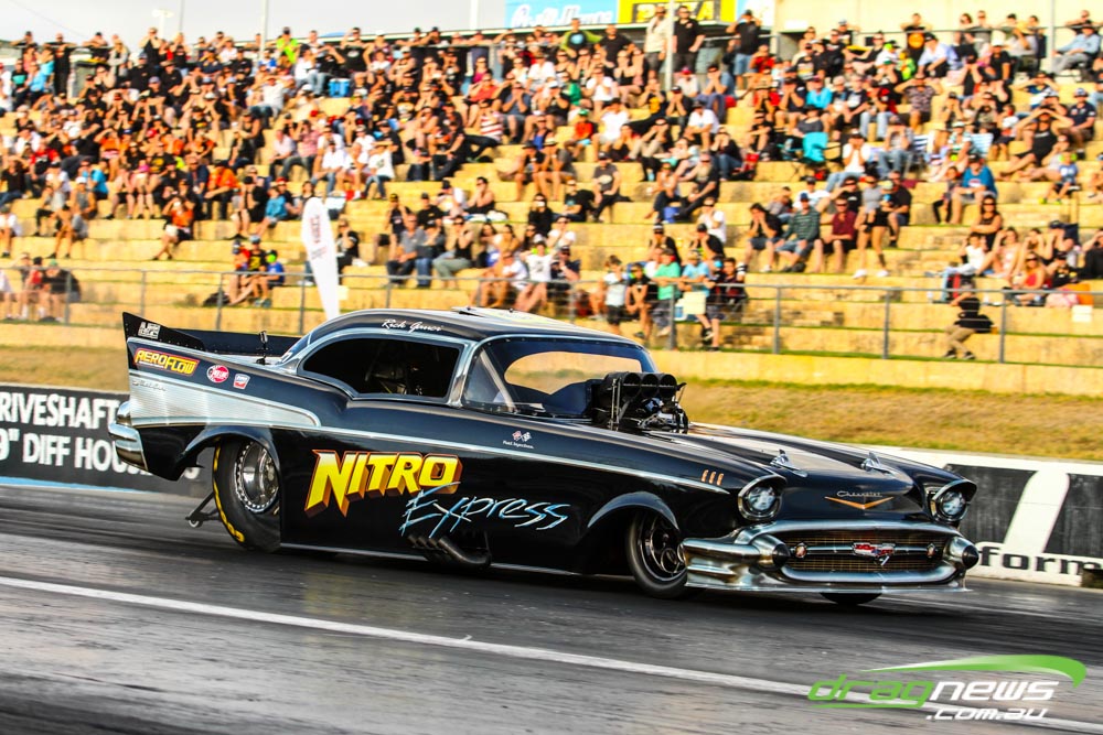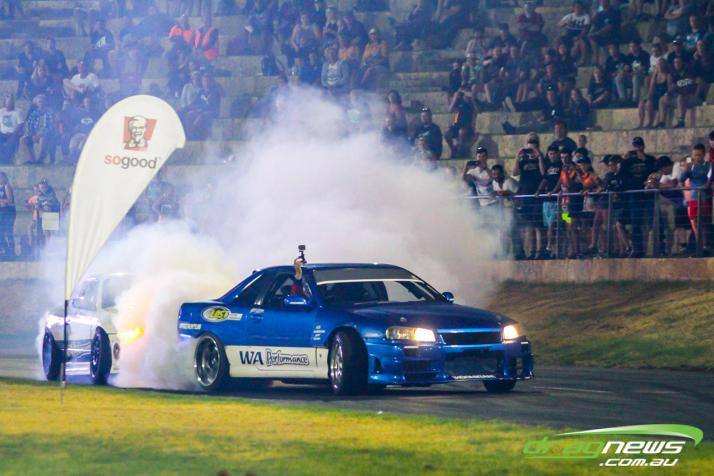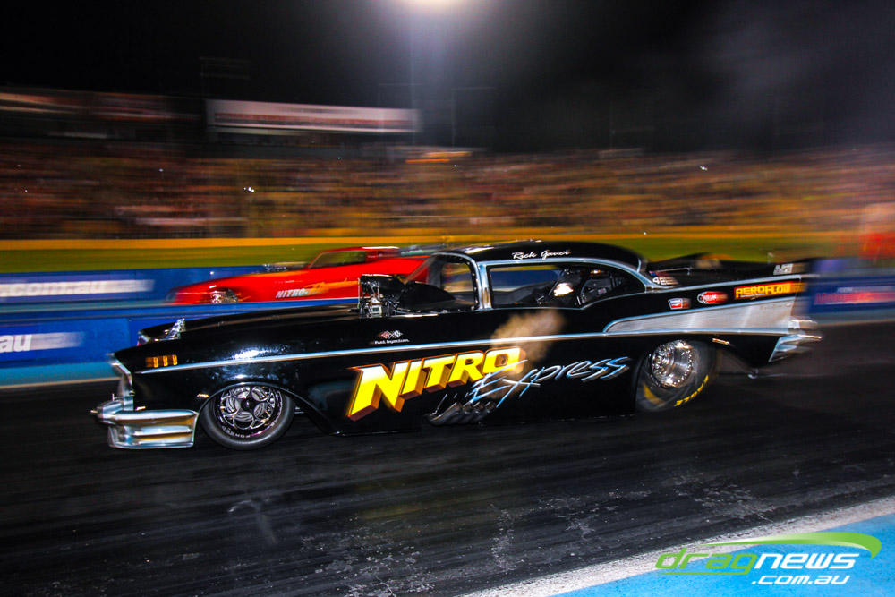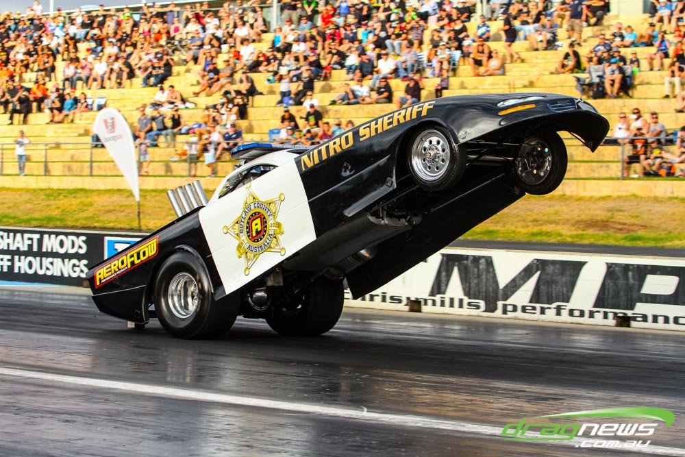 As well as the nitro burning show, the event was complemented by the Nitro Sheriff wheelstander and drifting demonstrations throughout the night, which proved among the best between-round entertainment seen at a drag strip.