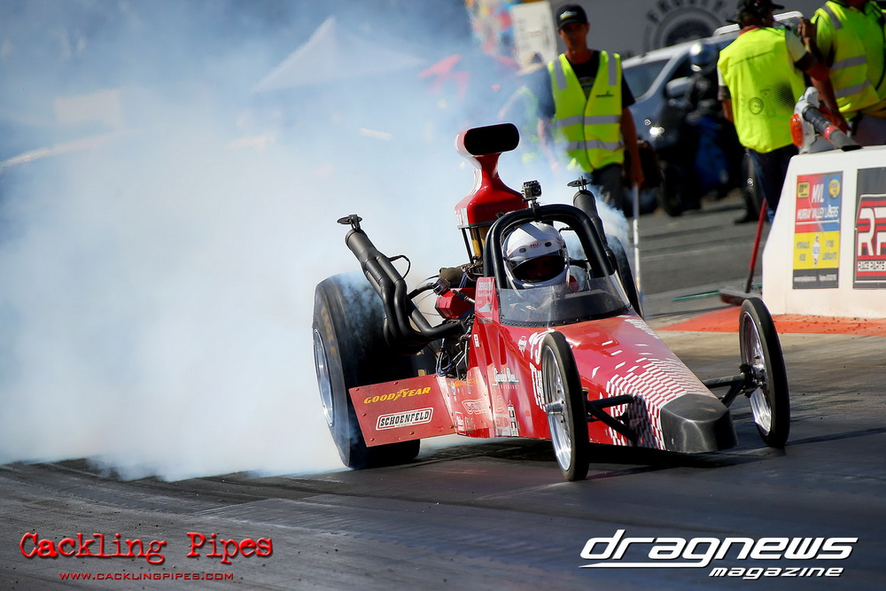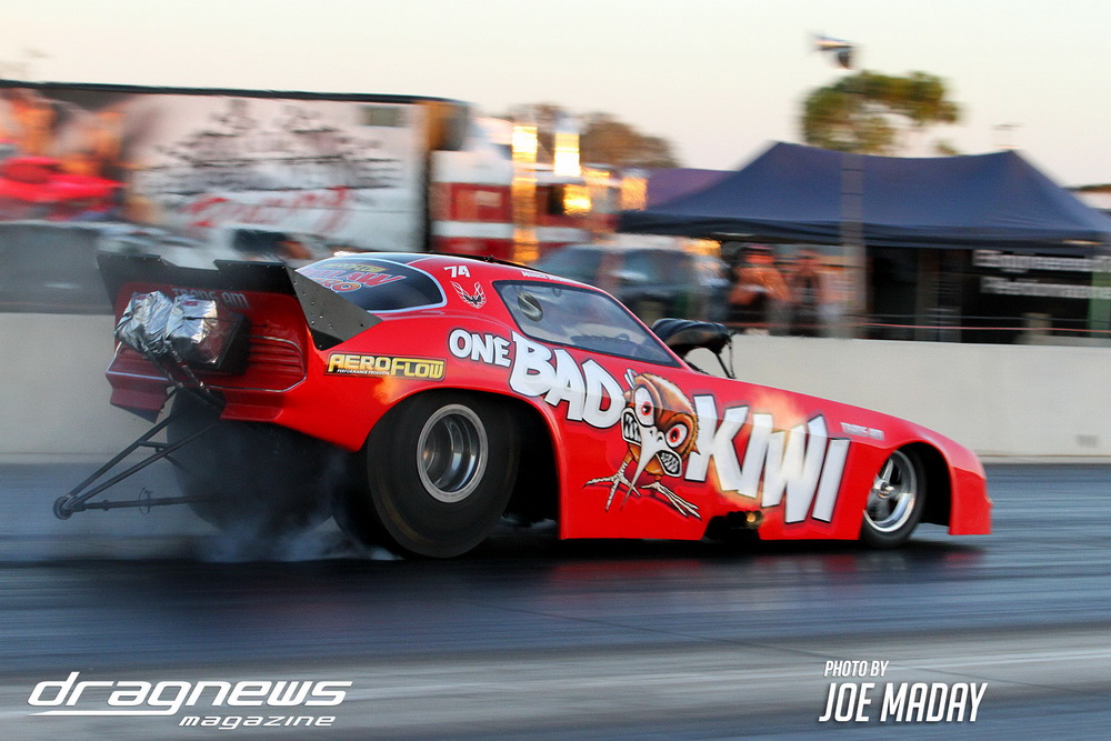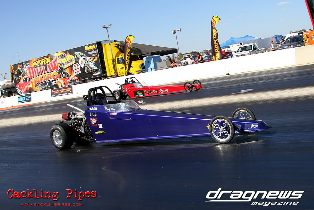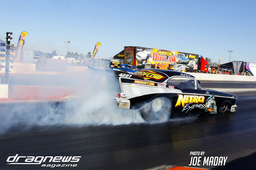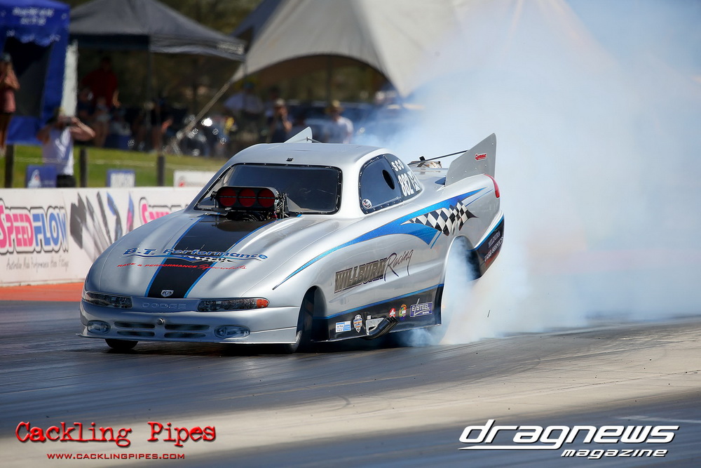 Rick Gauci went three for three to win the event in Nitro Express, Justin Walshe snatched second in Terminator and Josh Leahy – who had a wall scraping final in The Bandit against Nitro Express – still ran third. The Bandit also set low ET of the event with a 5.66 off the trailer in round one.