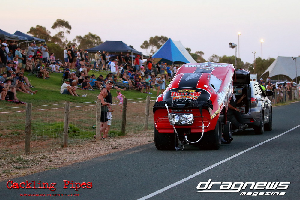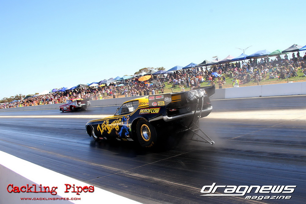 Fledgling Swan Hill Dragway played host to the Aeroflow Outlaw Nitro Funny Car series for the first time, and the bumper crowd was delivered an outstanding show of nitro funny car racing.