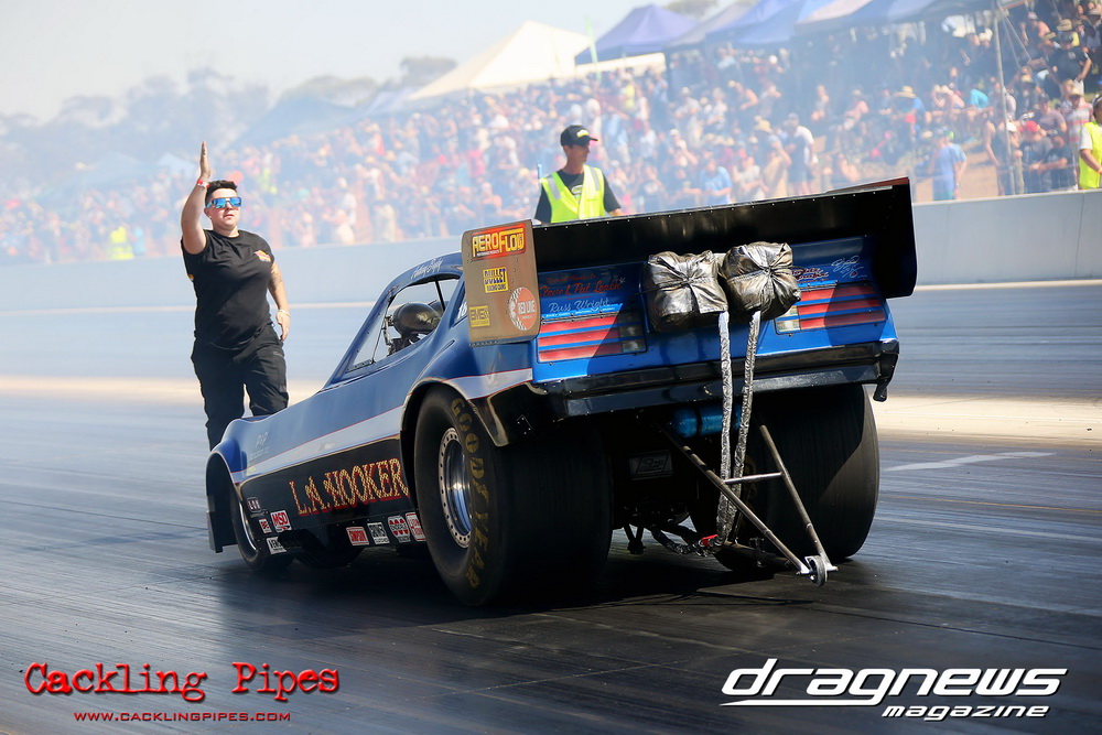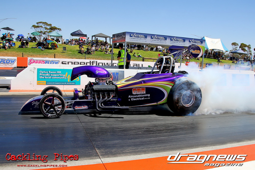 The event would be Swan Hill Dragway’s first major event in their short history, and despite temperatures closing in on the 40 degree mark and dusty conditions with most of the region in drought, the dragway’s staff did an outstanding job of keeping the racing surface up to a standard that saw some ripping five second nitro racing.