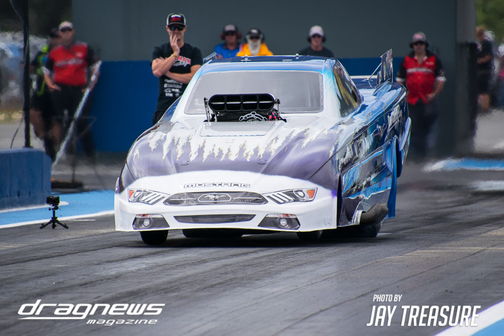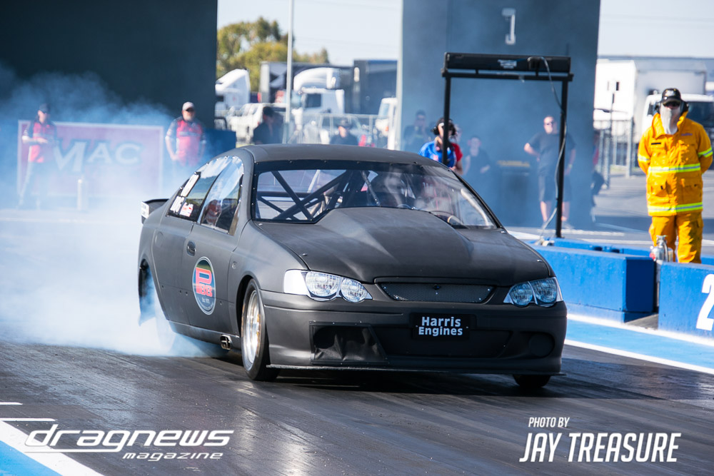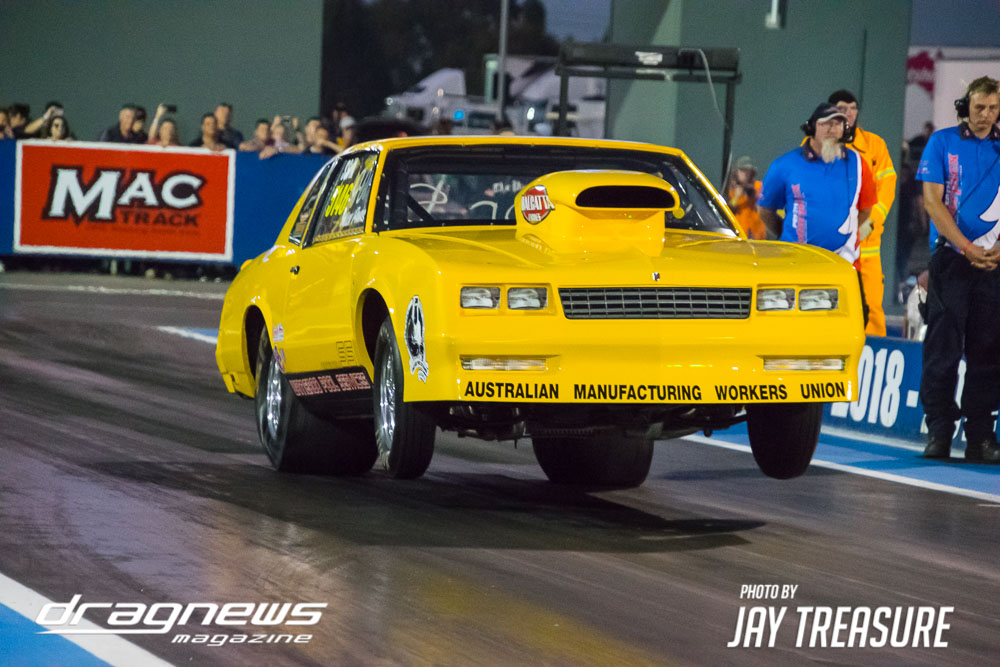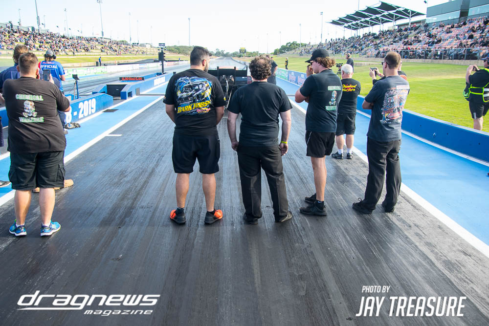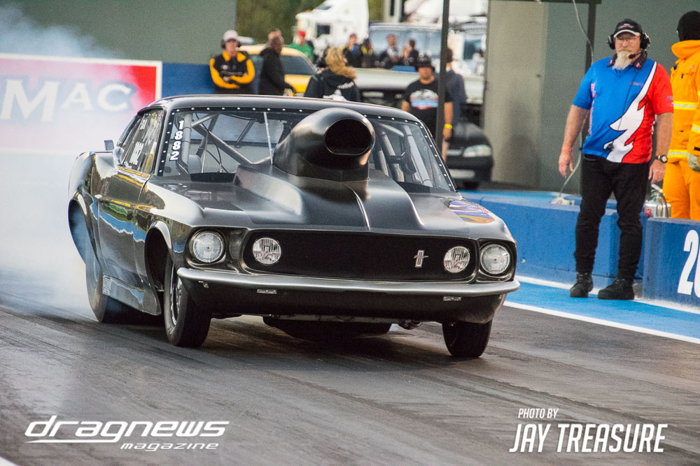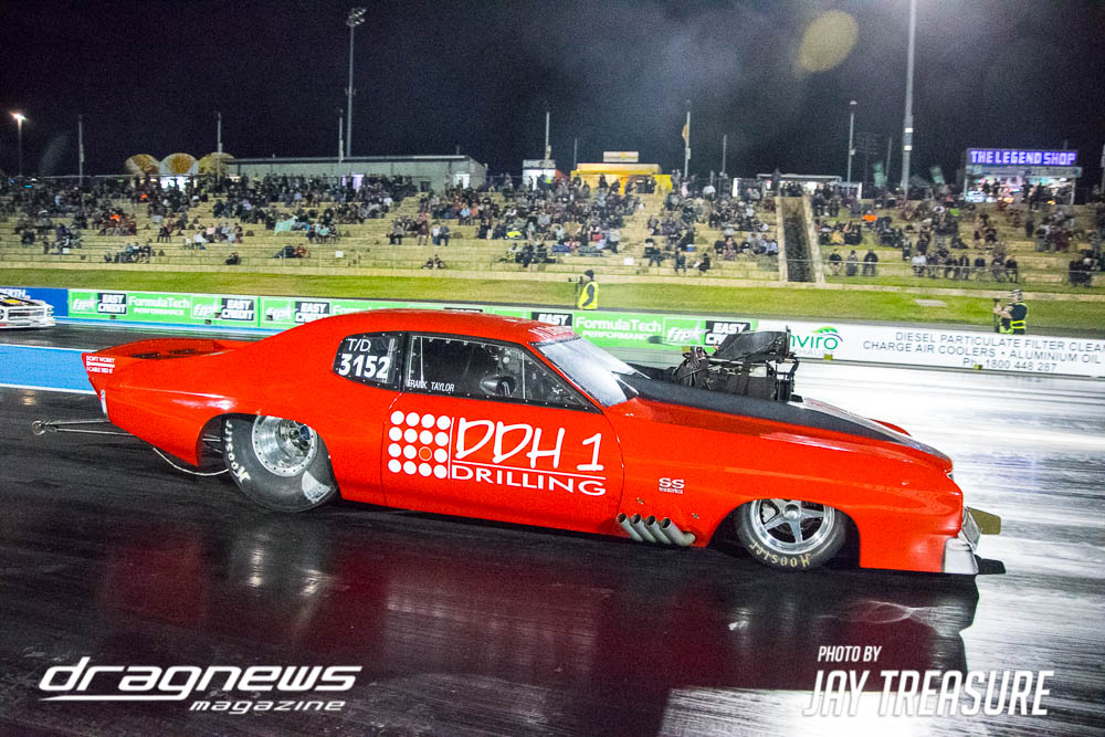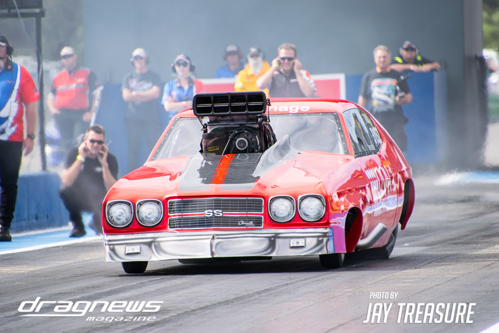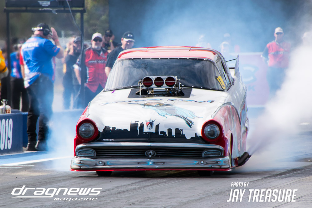 The Northern Territory’s Adam Murrihy defeated local favourite Andrew Katavatis out of the remaining Funny Cars, with a 5.86sec. run in the final driving Rory Taylor’s Nitro Thunder car. Katavatis overcame an electrical problem the team had been chasing but with more power on board they didn’t have enough runs to adjust their tune up.