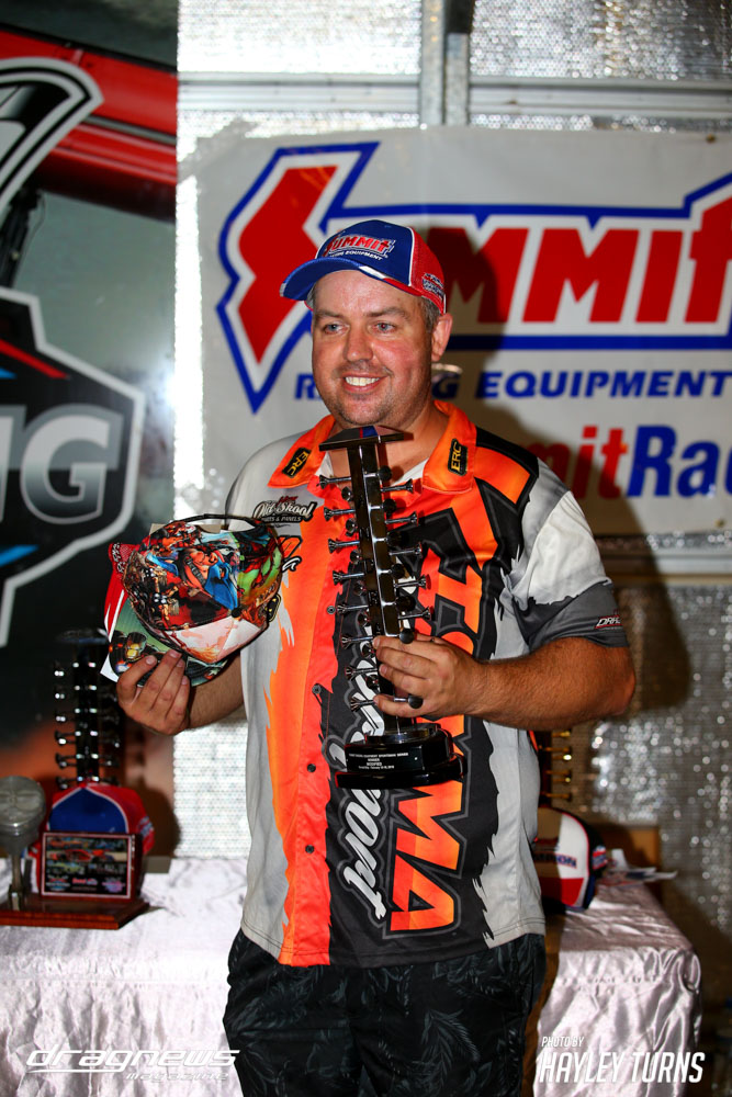 Another unexpected victory went to Wayne Talbot, who despite coming to the event with the intention to test, clean-swept the Supercharged Outlaw proceedings by clinching the Top Qualifying honours and the event victory over Mike Evans. Talbot had earlier faced off against Mark Hunt (semi) after a bye in the opening round while Evans took on Jason Keily and Simon Richards.