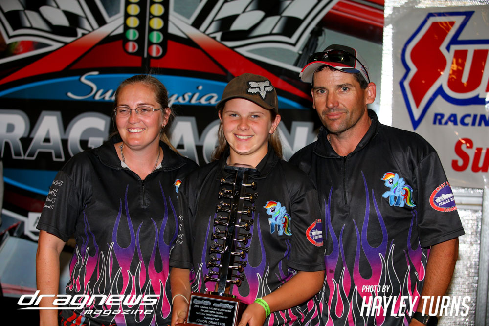 “I want to thank my family: my mum, dad and sister as well as my grandparents who have come to nearly every event, and also everyone in the drag racing community – they are very positive and great people. The thing I really love about racing juniors is actually not the racing side, it is all of the families that are involved. It is a very family-friendly sport and on top of that the racing side is fun; you get to go fast and have fun.”
