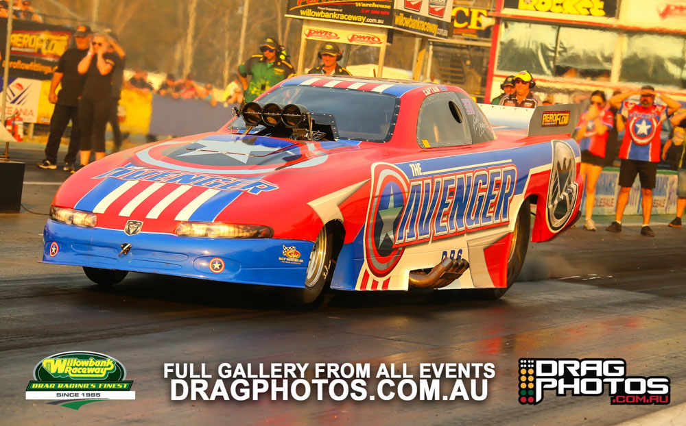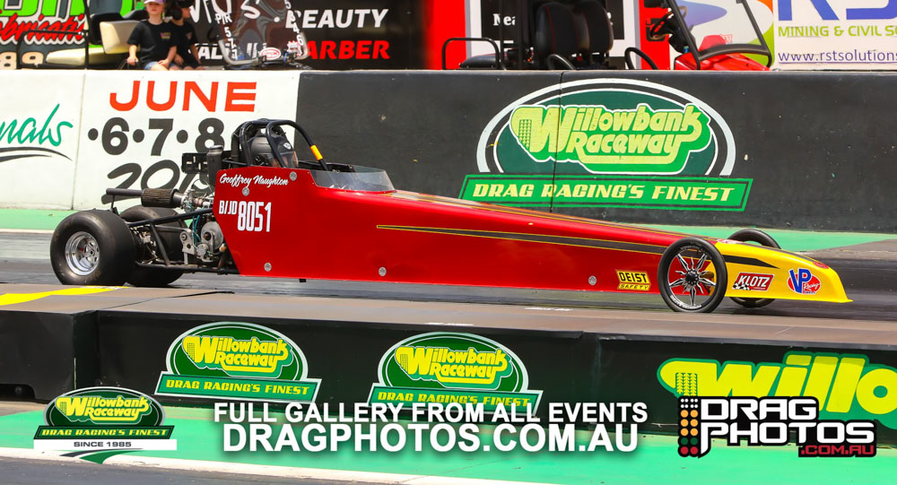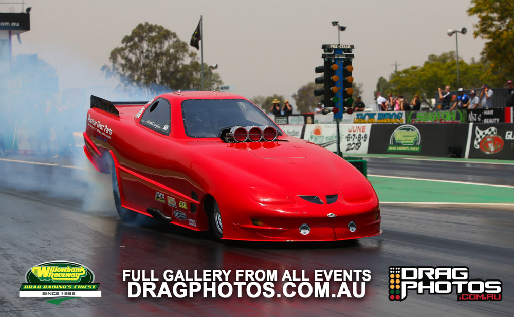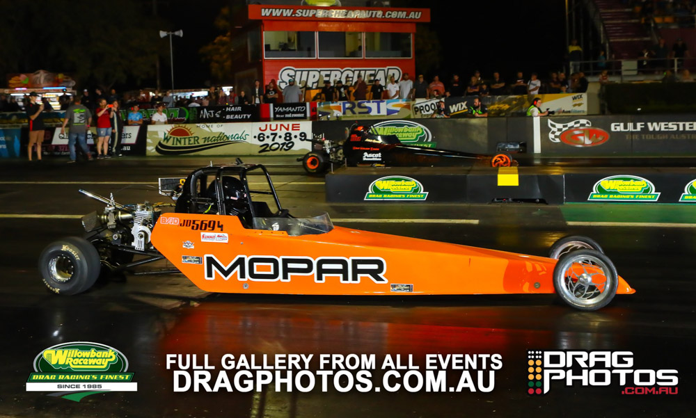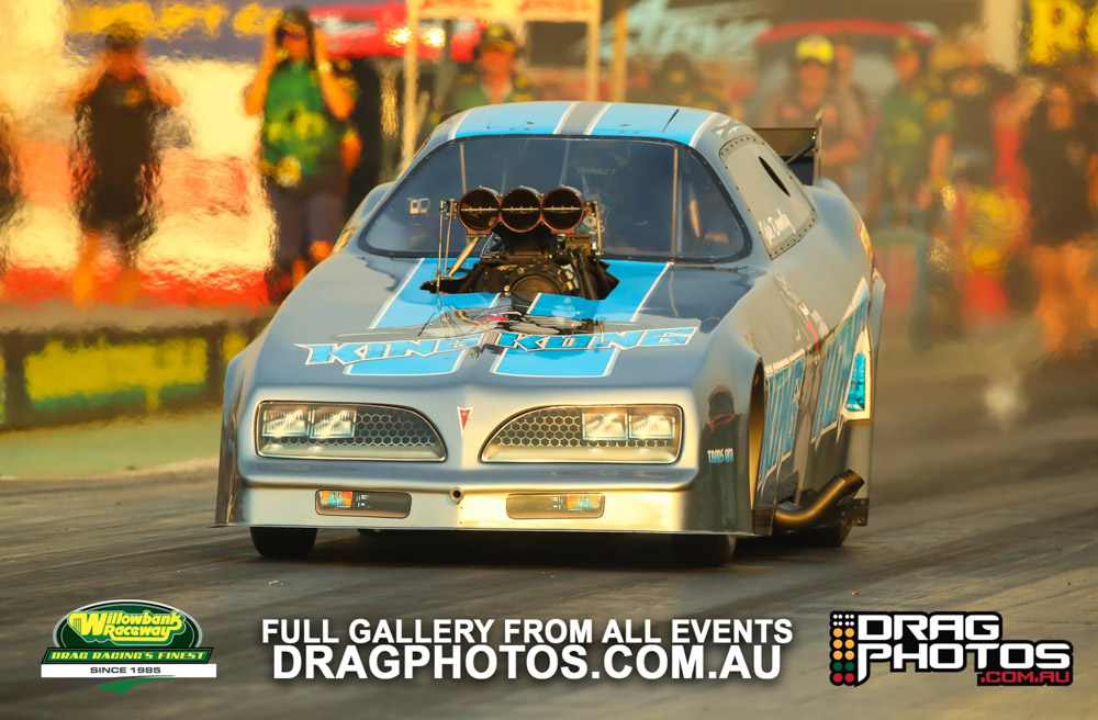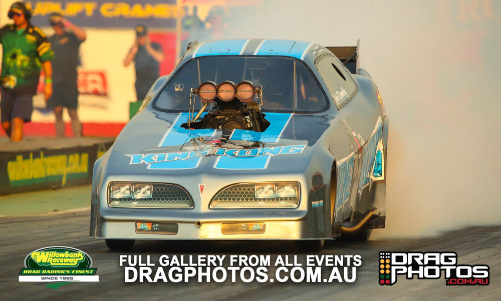 Modified saw Andrew Pinkstone use a .009 reaction time and a 7.72 on a 7.68 to knock out former national Modified champion (and sometimes Top Fuel driver) Kelly Bettes. The championship went to Mark Allen by just one point over Tony Littlewood, who had a costly red light in the semi finals.