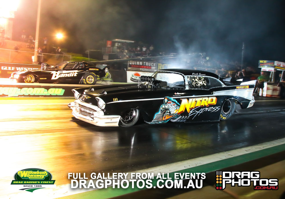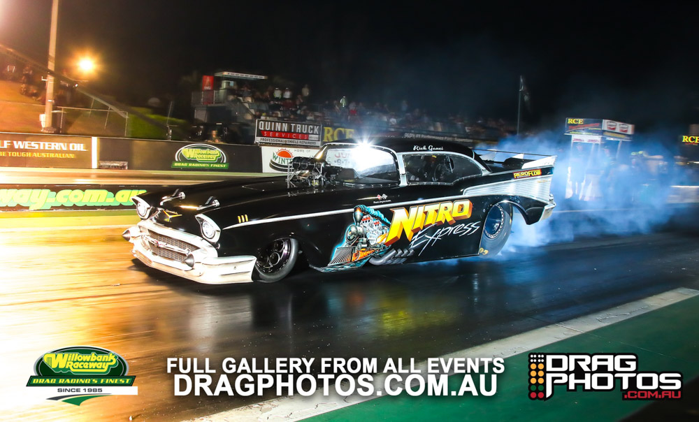 Rick Gauci opened the floodgates early with a stunning 5.408 at 264mph from Nitro Express, defeating a 5.56 from Greg Leahy in Stormtrooper. Also on the performance bandwagon were Josh Leahy with a 5.53 out of The Bandit and Dan Donnelly, also with a 5.53. With all but two cars well into the fives it was a stunning first round of racing.