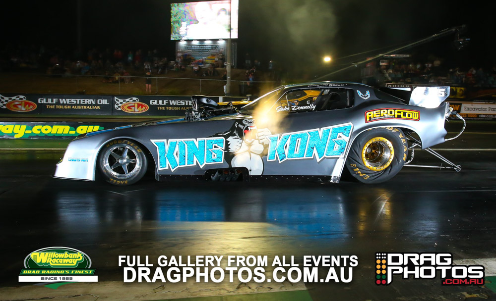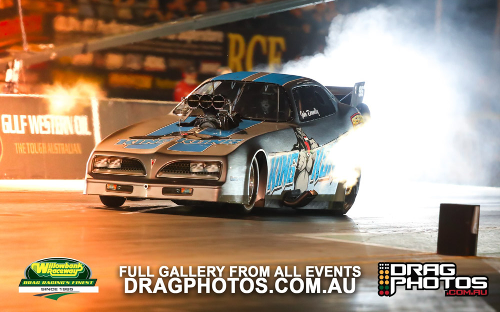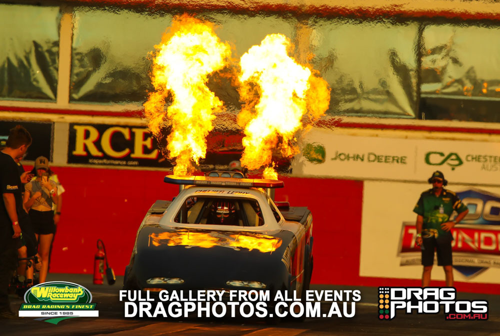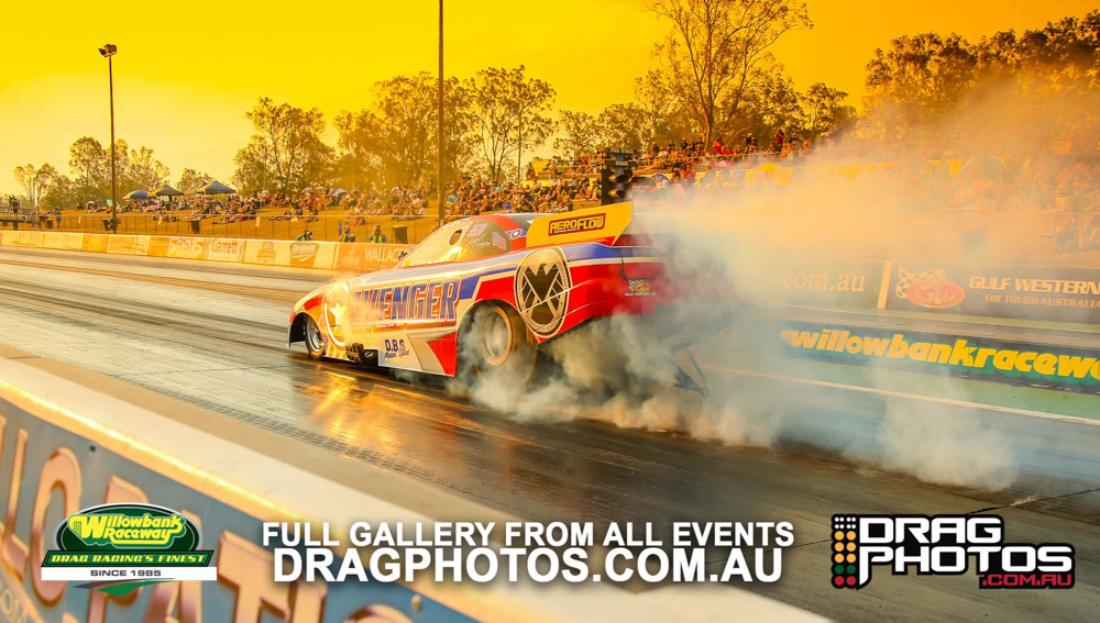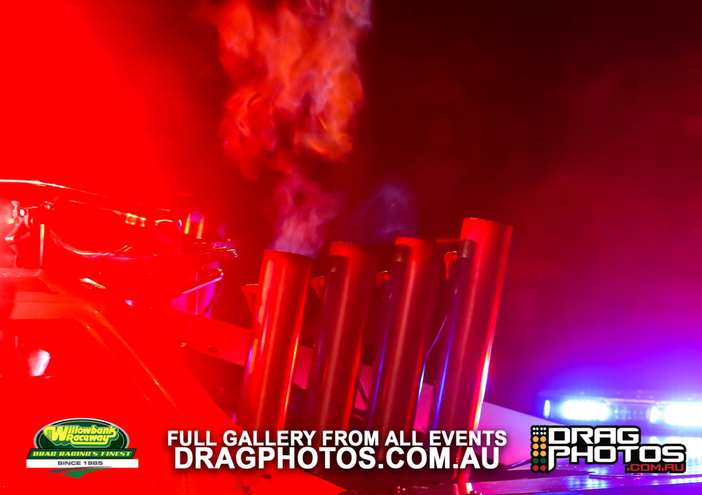 Under smoke-filled skies, the Aeroflow Outlaw Nitro Funny Cars returned to Willowbank Raceway alongside the Queensland Drag Racing Championship on November 9.