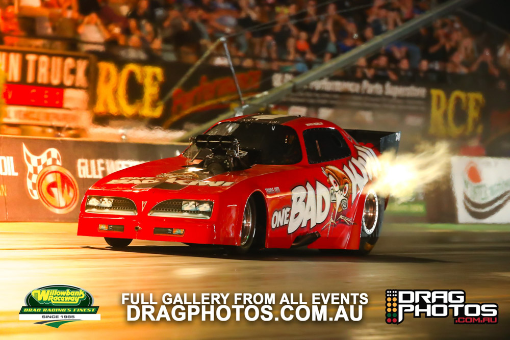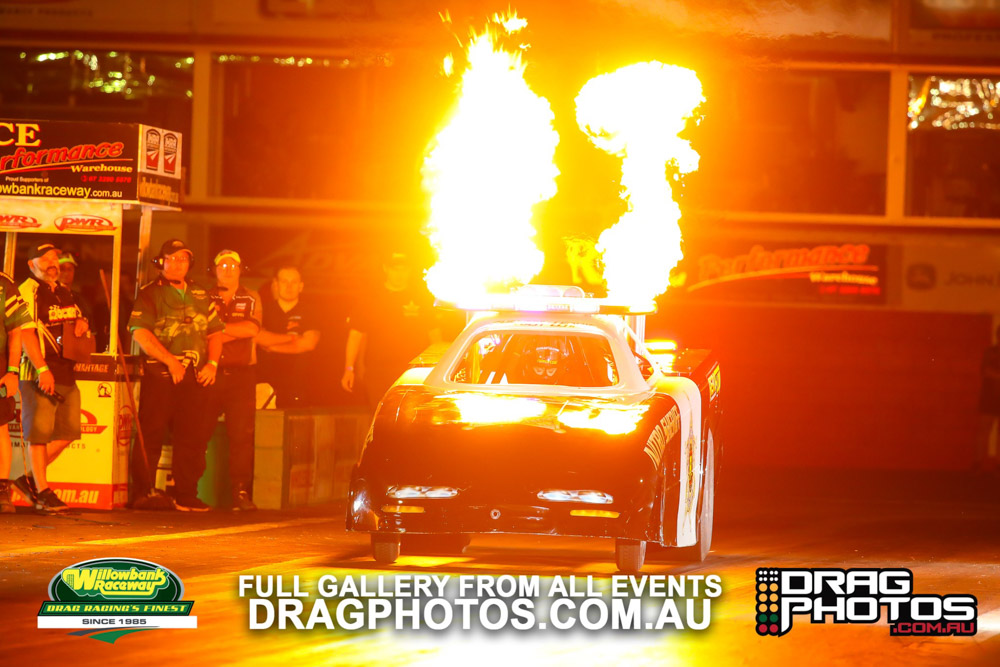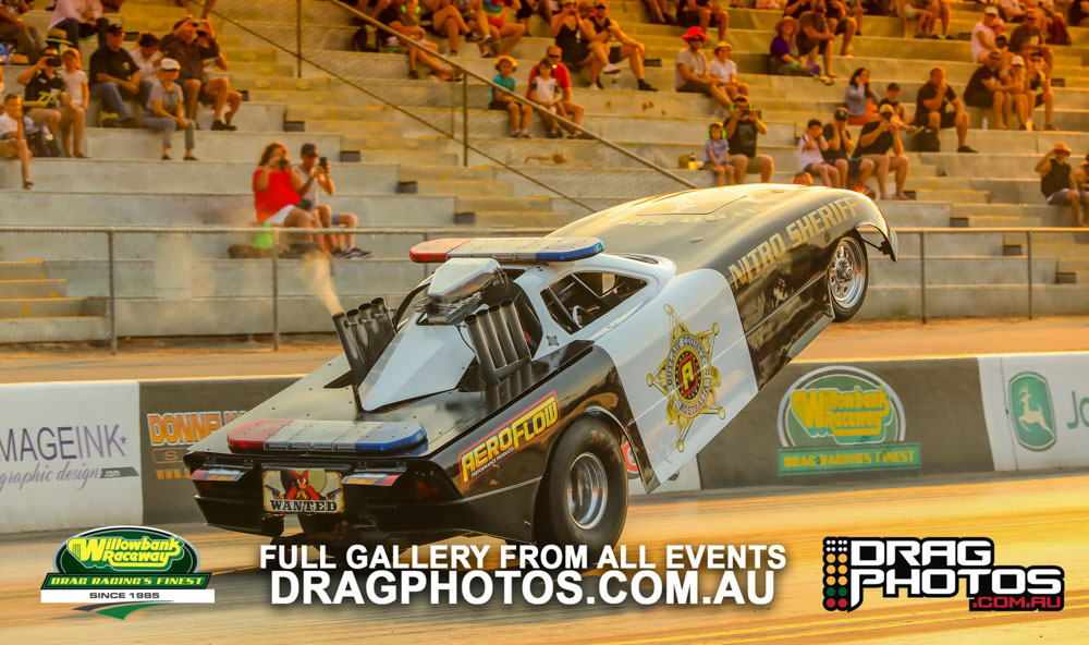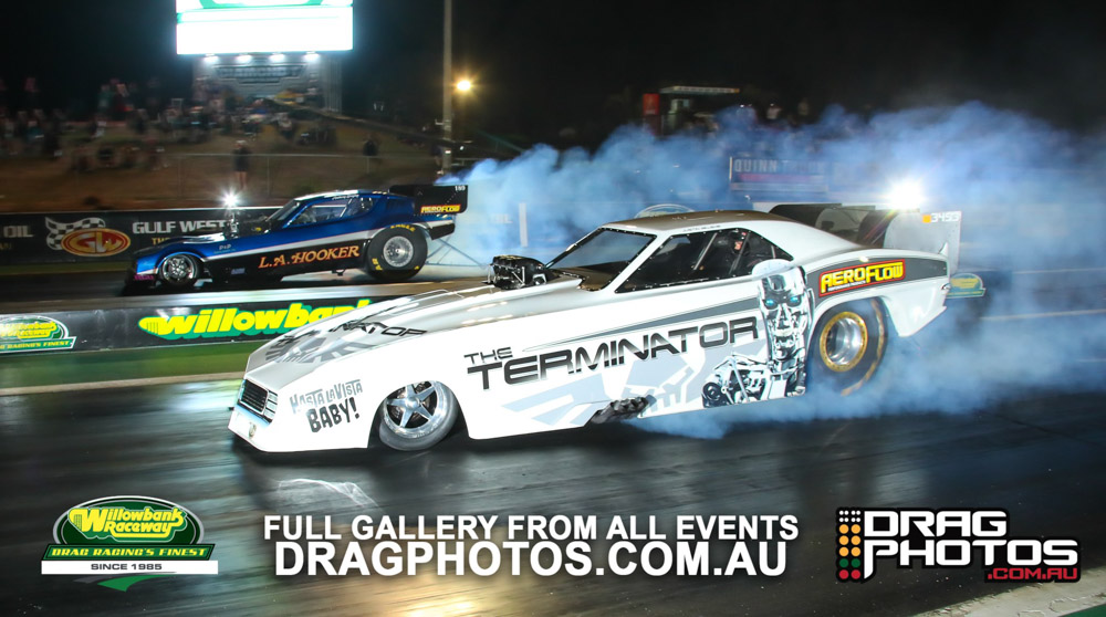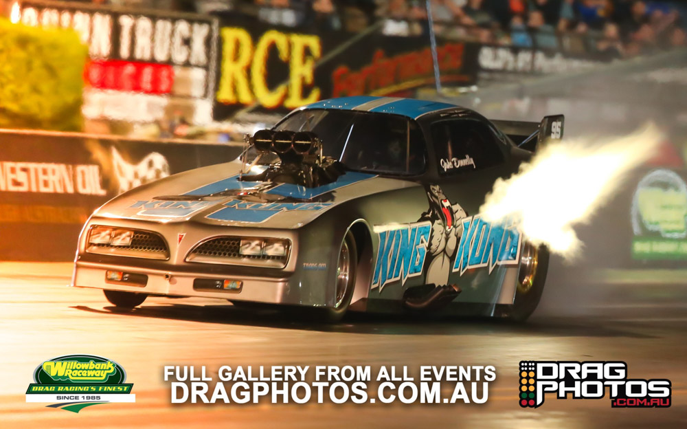 Under smoke-filled skies, the Aeroflow Outlaw Nitro Funny Cars returned to Willowbank Raceway alongside the Queensland Drag Racing Championship on November 9.
