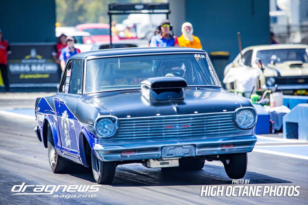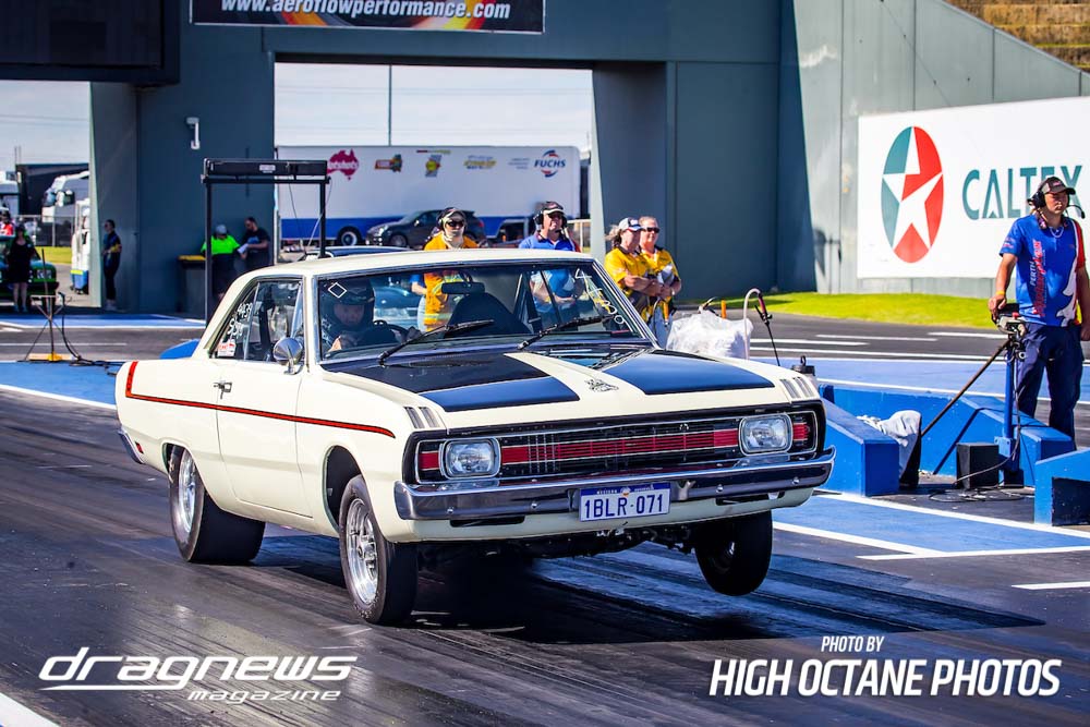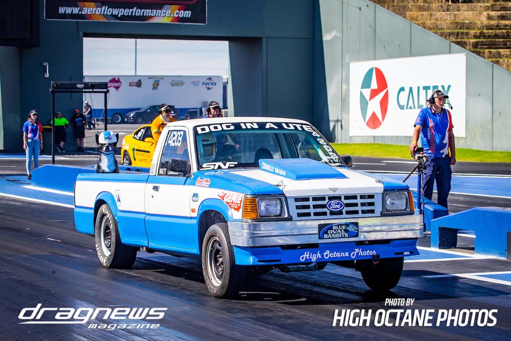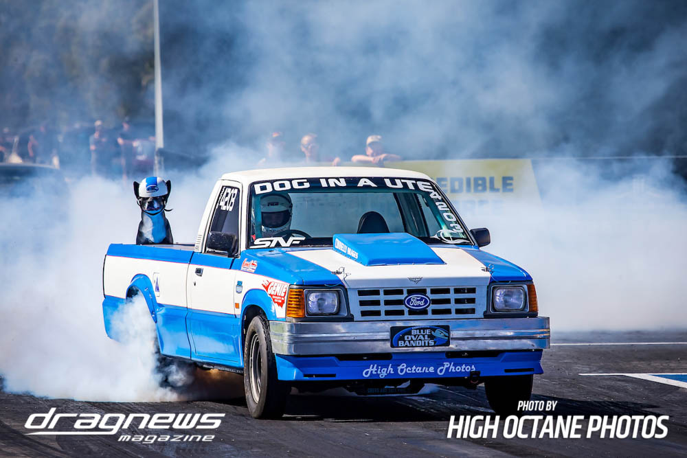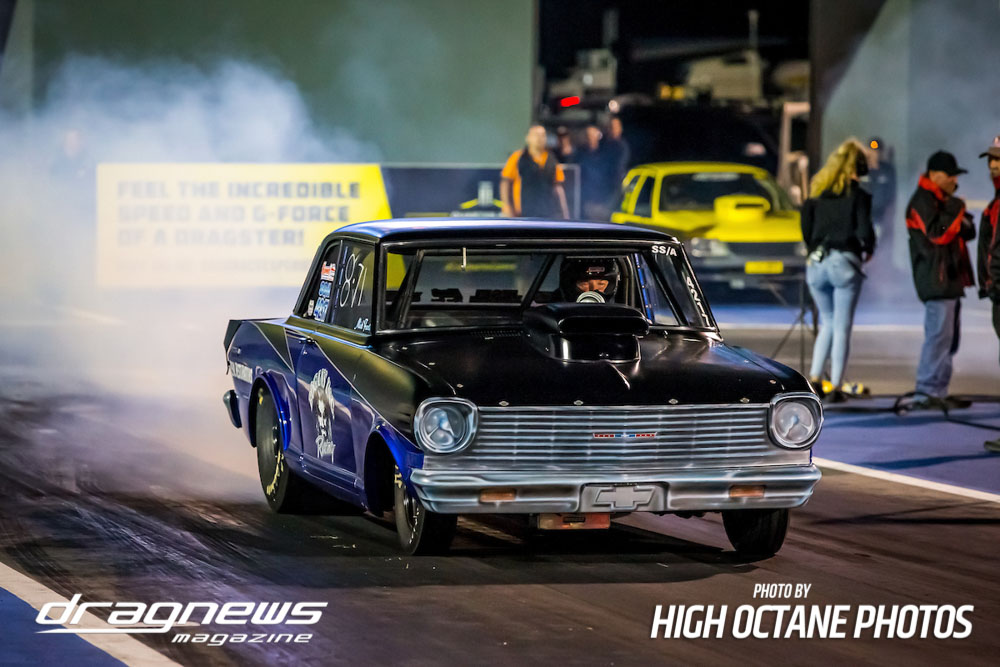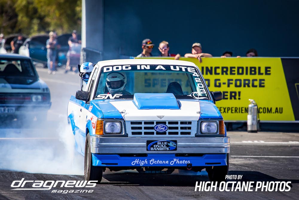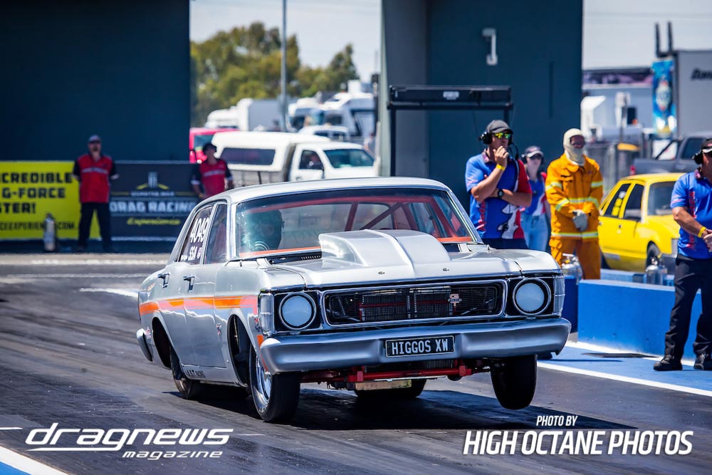 The Summer Slam was surprisingly tough with the top five cars qualified in the five second zone. Zappia positioned himself strongly early with a 5.64, following by Daniel Gregorini’s 5.70, Steve Aldridge’s 5.90, Marty Dack’s 5.96 and Mark Chapman’s 5.98. Stuart Moresby’s repaired Studebaker was only just outside the fives with a 6.02.