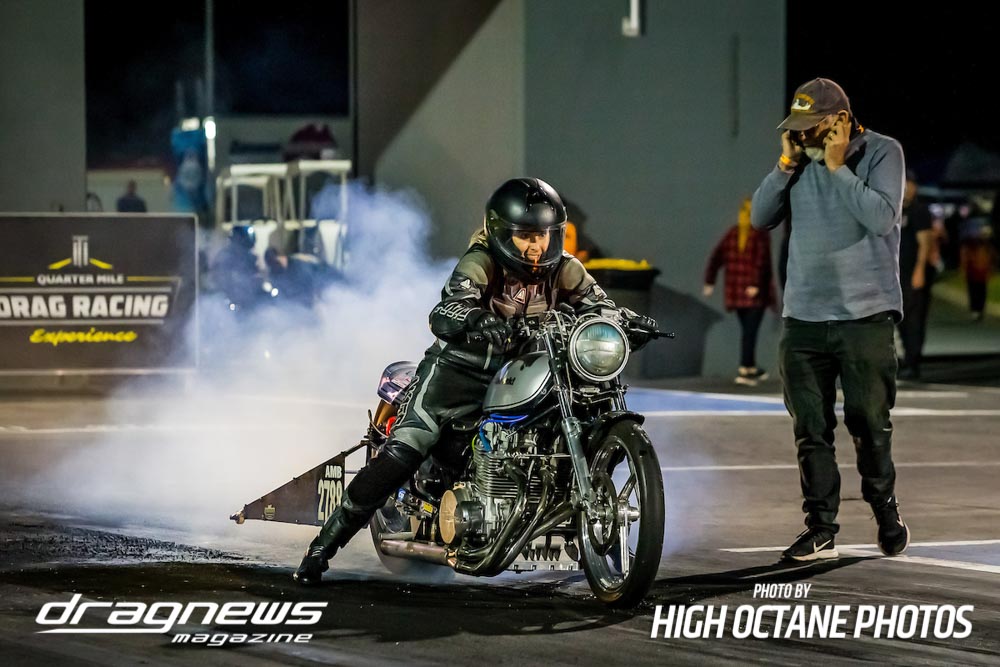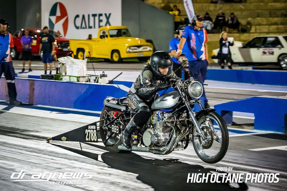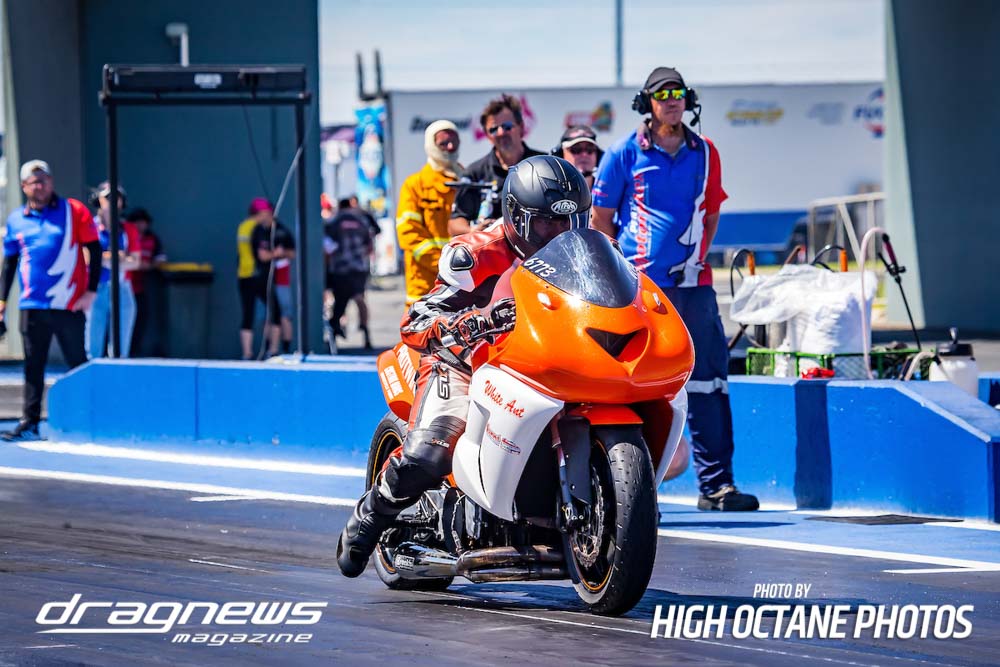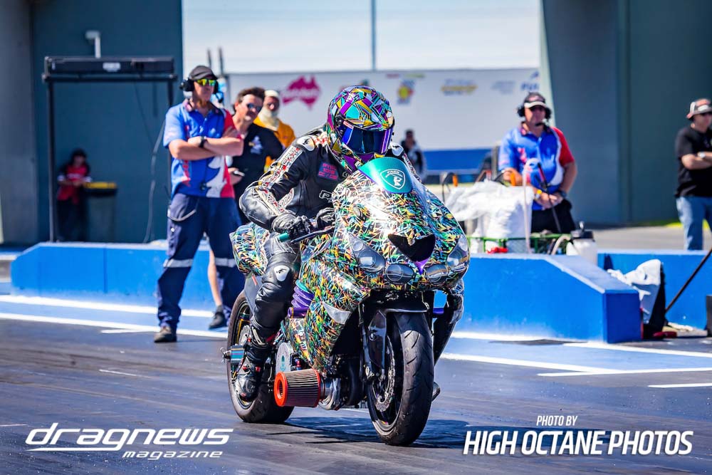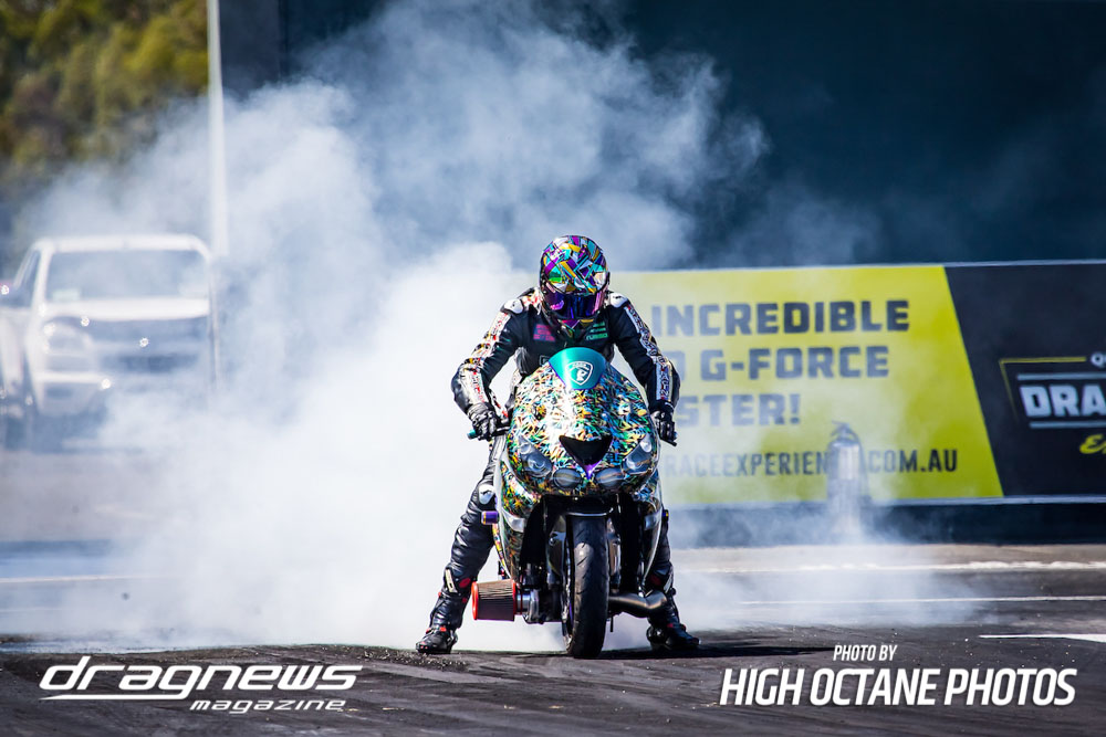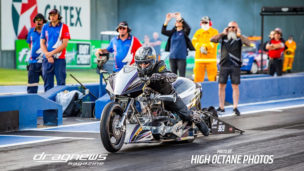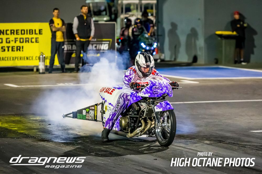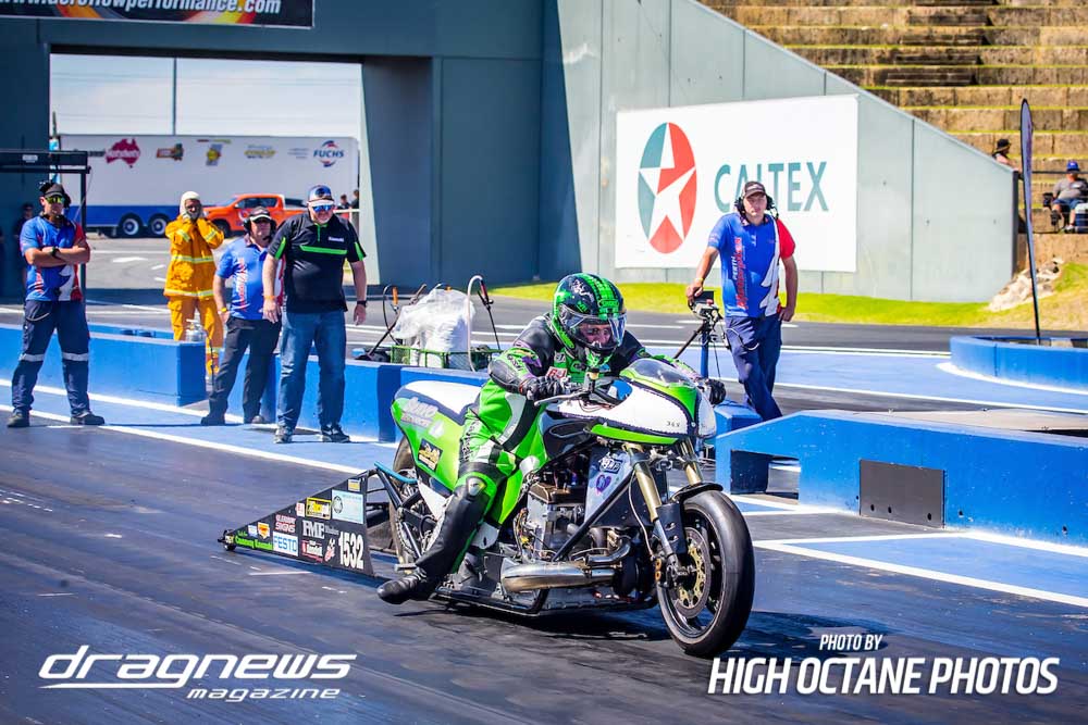The Nitro Bike class saw Greg Durack run a new personal best time of 6.77sec. aboard his turbocharged Kawasaki, defeating Les Holden in the final round.