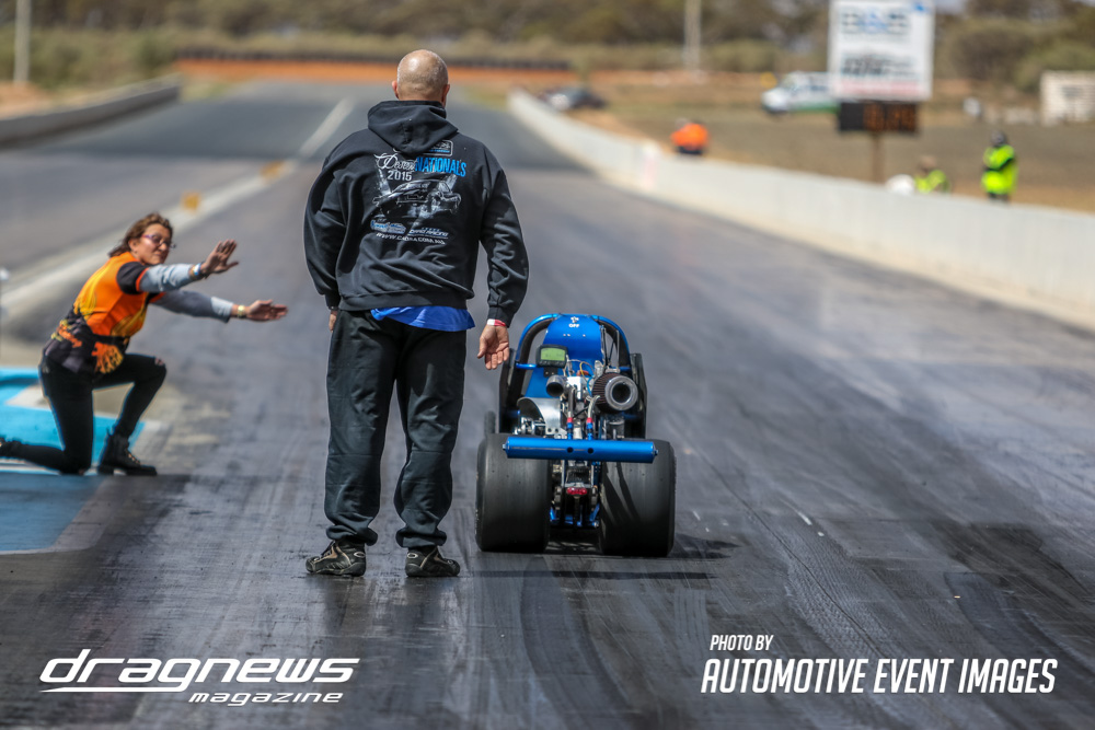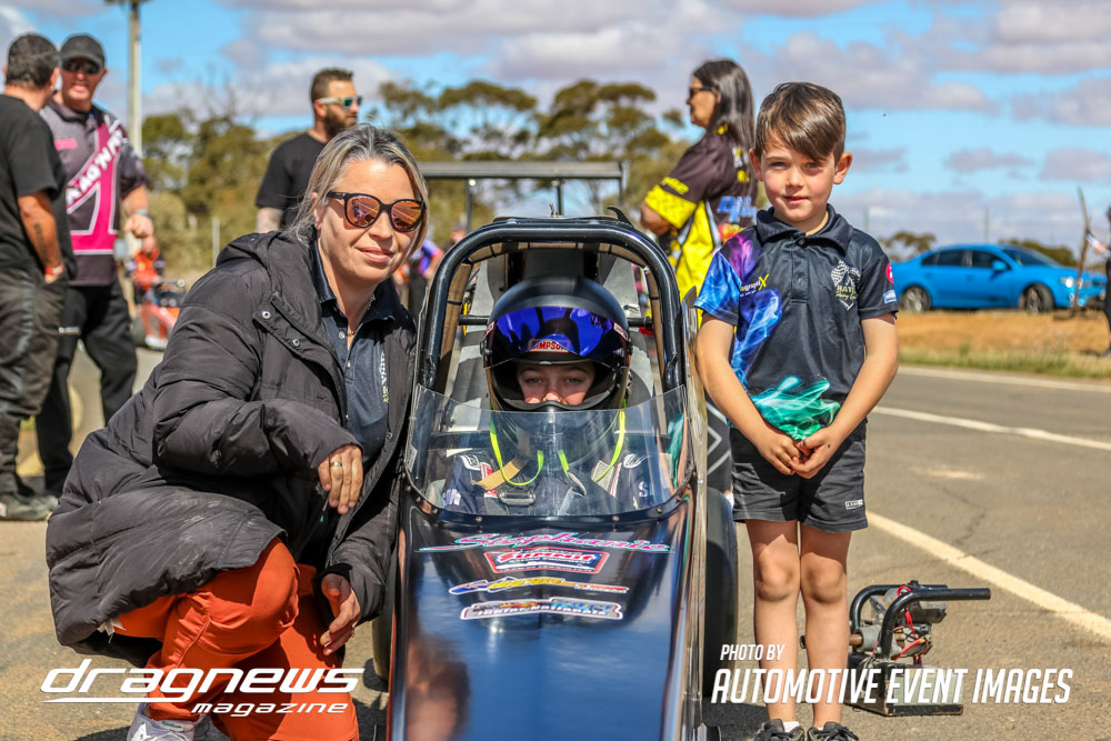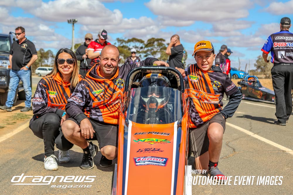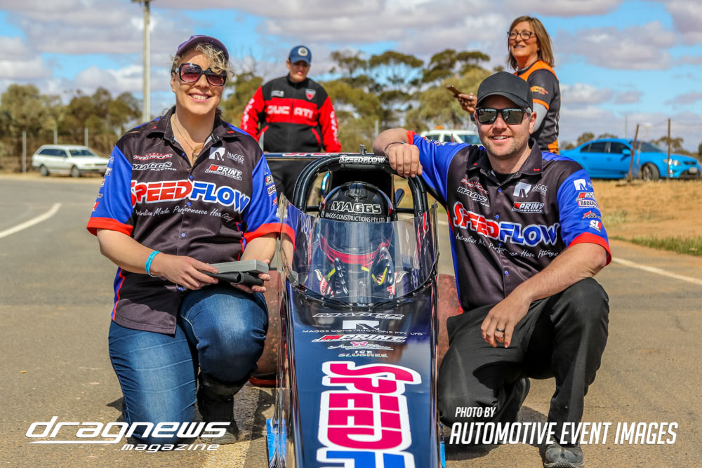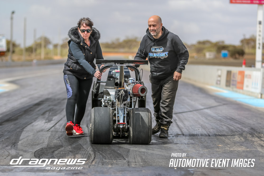 “I would like to thank Graham Elliot – this car is a replica of the car he raced back in the 60s and 70s. He wanted to build a replica so a few people got together and pieced it together over a year. I would also like to thank my brother, Steve Hunt, my mum and dad and the whole racing family we have. Finally I would also like to thank the Sunraysia Drag Racing Association for putting on the meeting.”