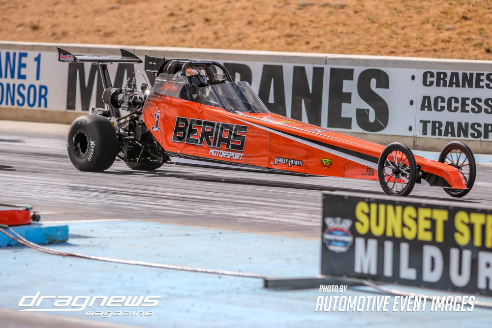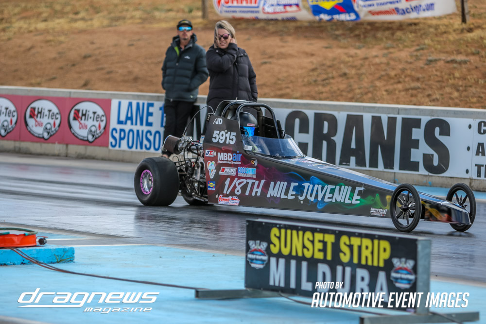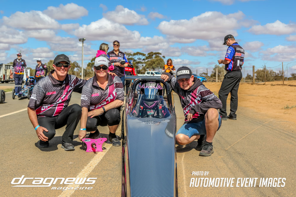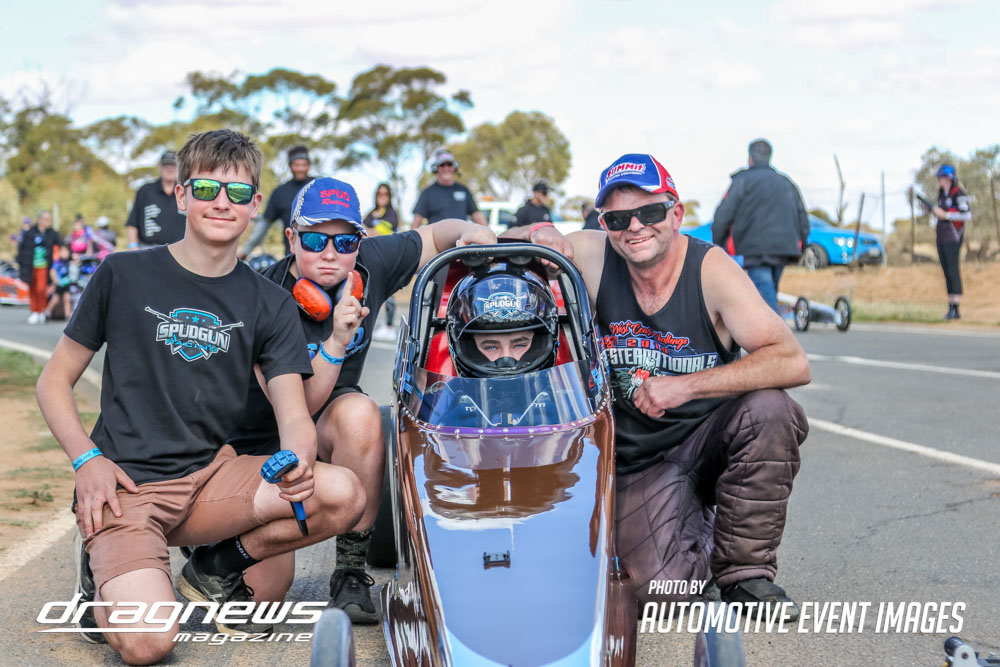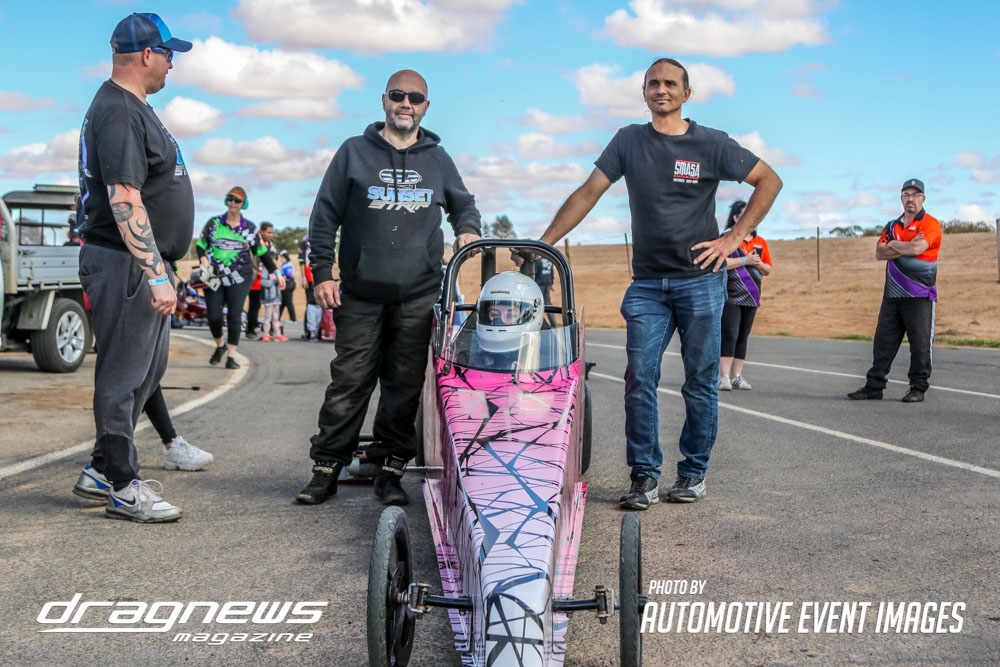“I would like to thank Graham Elliot – this car is a replica of the car he raced back in the 60s and 70s. He wanted to build a replica so a few people got together and pieced it together over a year. I would also like to thank my brother, Steve Hunt, my mum and dad and the whole racing family we have. Finally I would also like to thank the Sunraysia Drag Racing Association for putting on the meeting.”