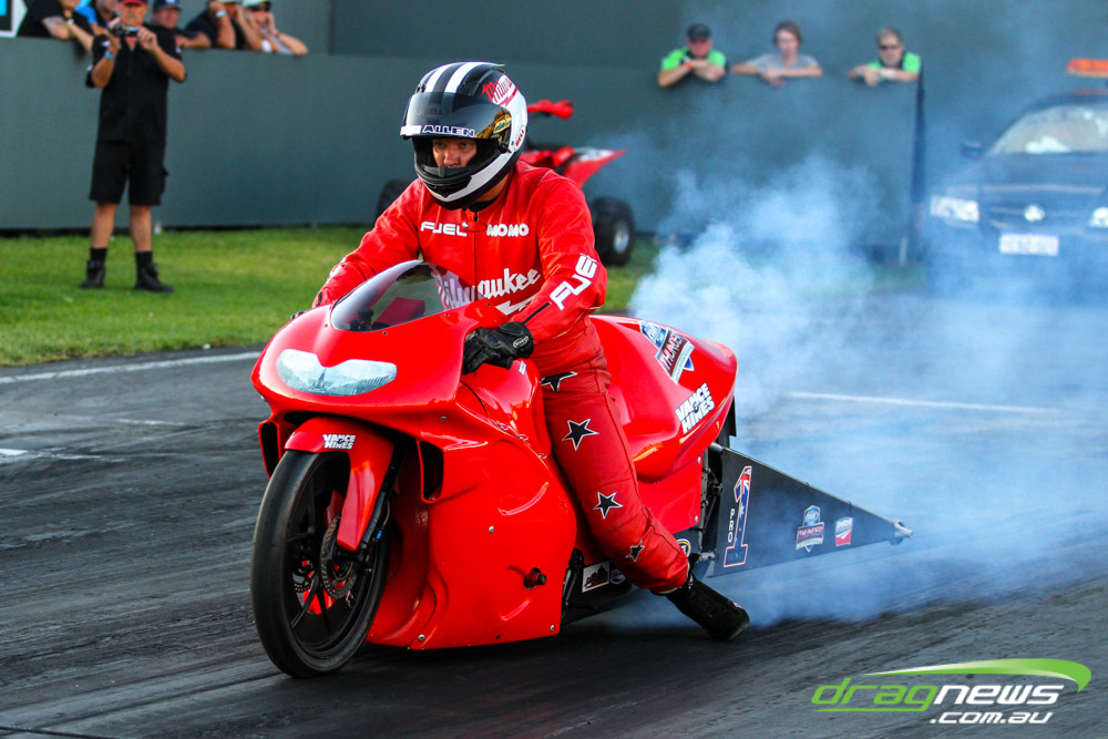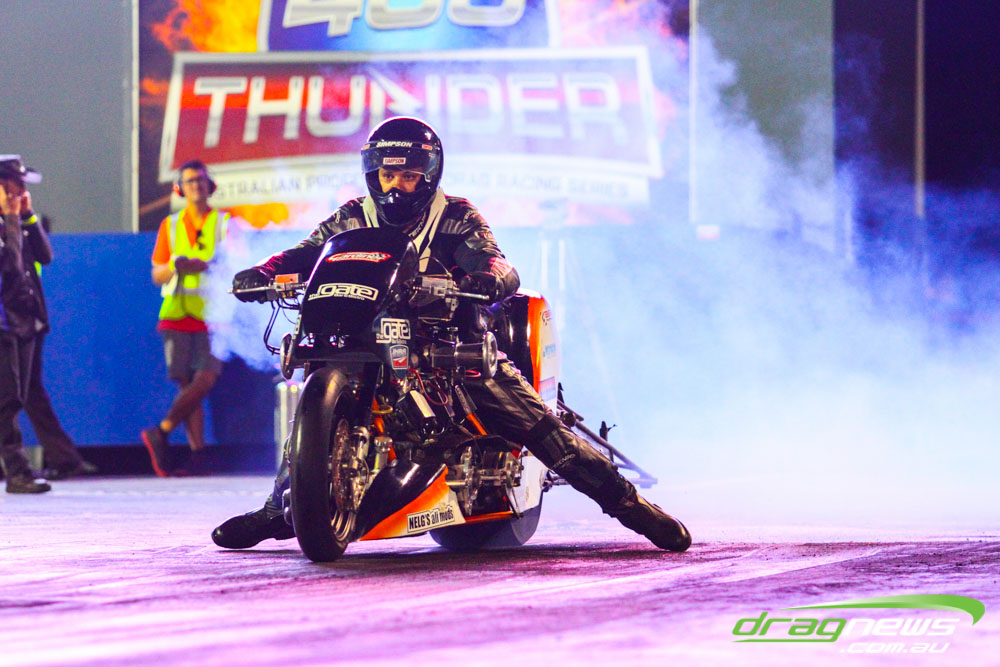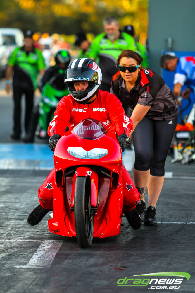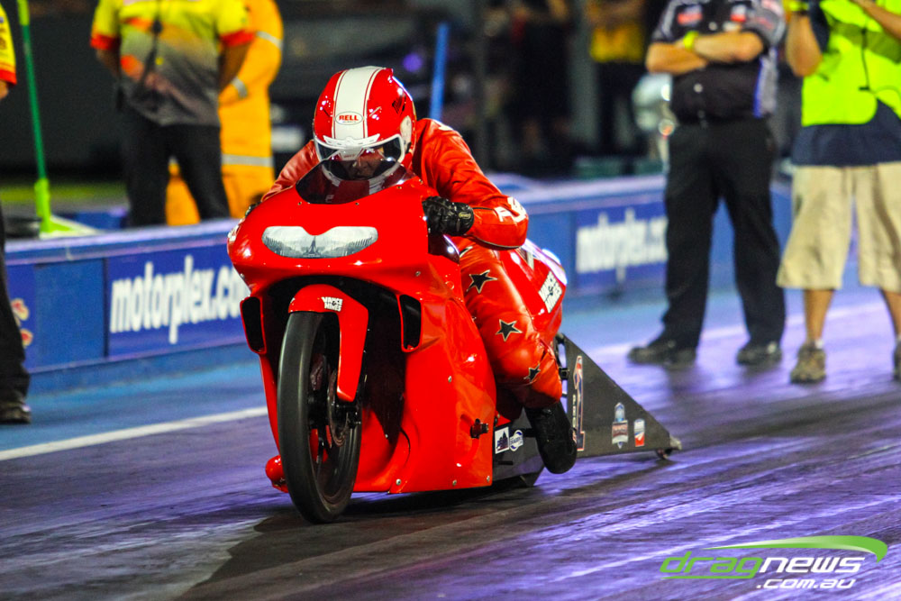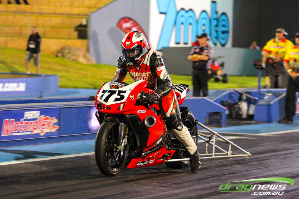 Pro Bike was back at Perth Motorplex for the first time in five years and Maurice Allen wasted little time setting the pace with a 7.235 to top qualify. Fellow Victorian Glenn Wooster was only just behind with a 7.262, while Scott White’s 7.397 best came in a tough night as he had to change an engine due to a piston breakage.