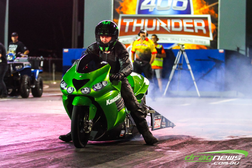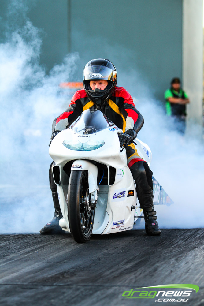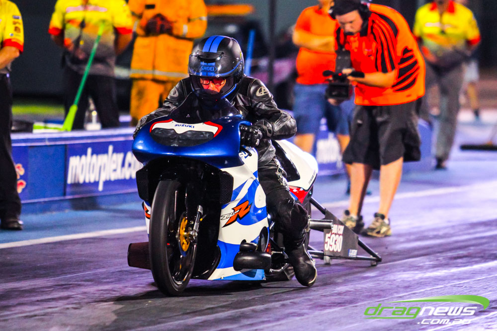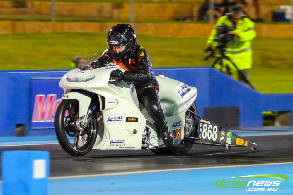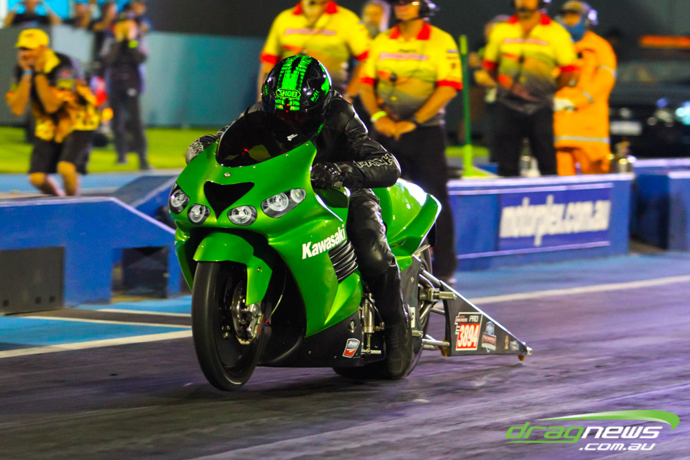 Pro Bike was back at Perth Motorplex for the first time in five years and Maurice Allen wasted little time setting the pace with a 7.235 to top qualify. Fellow Victorian Glenn Wooster was only just behind with a 7.262, while Scott White’s 7.397 best came in a tough night as he had to change an engine due to a piston breakage.