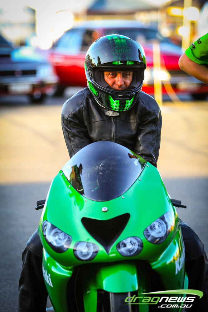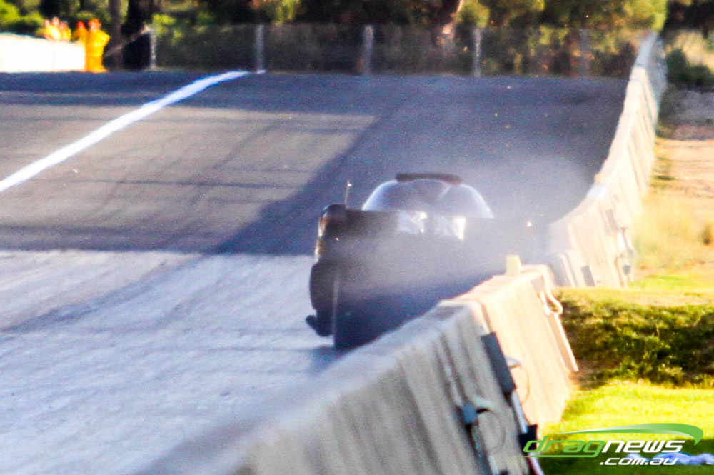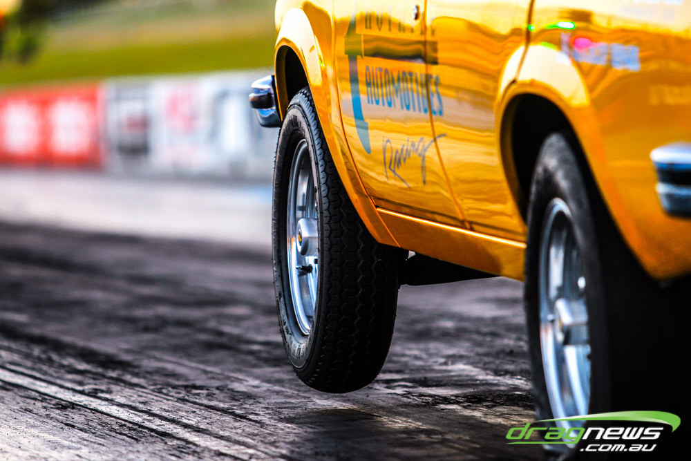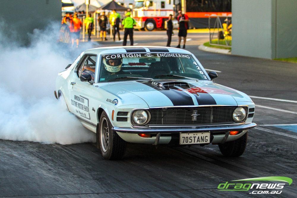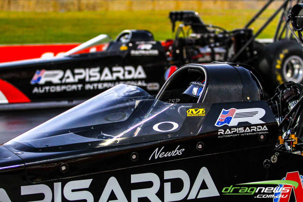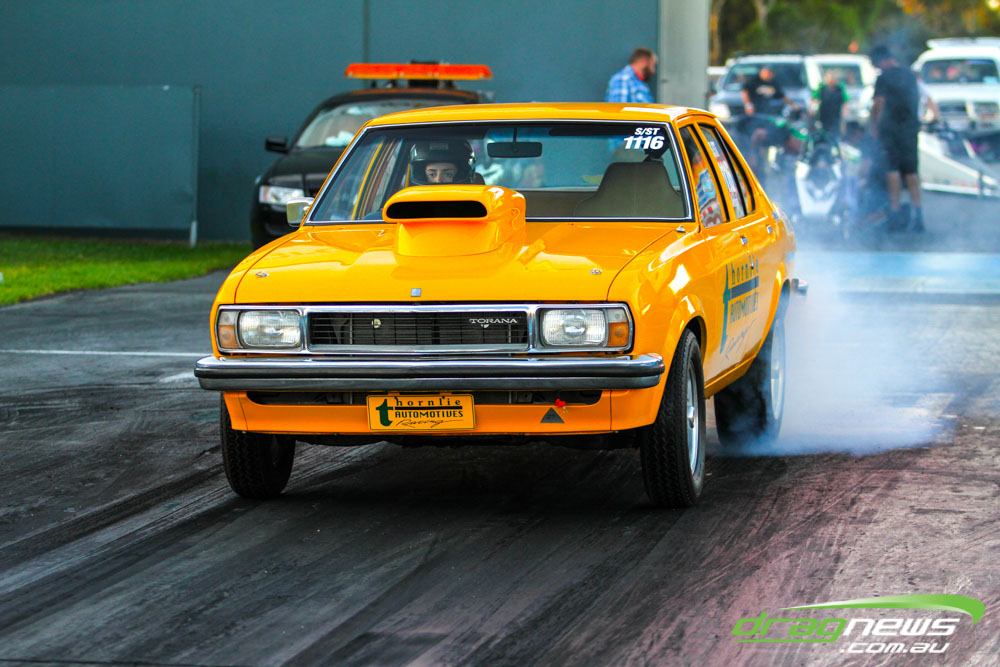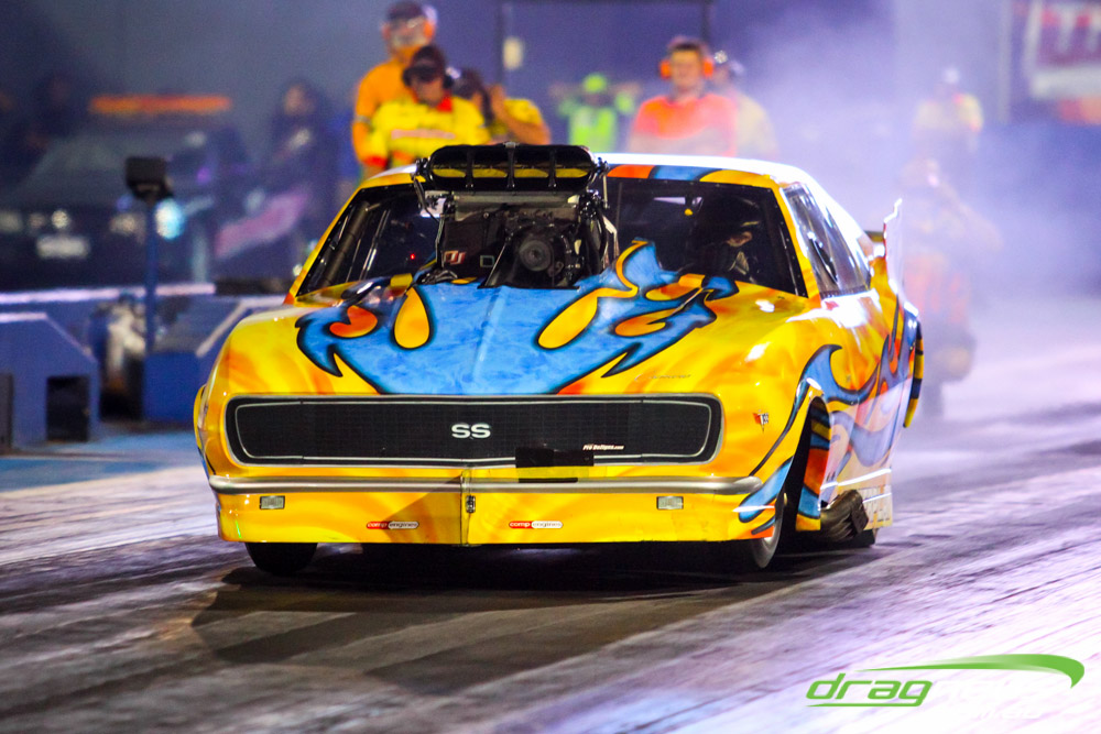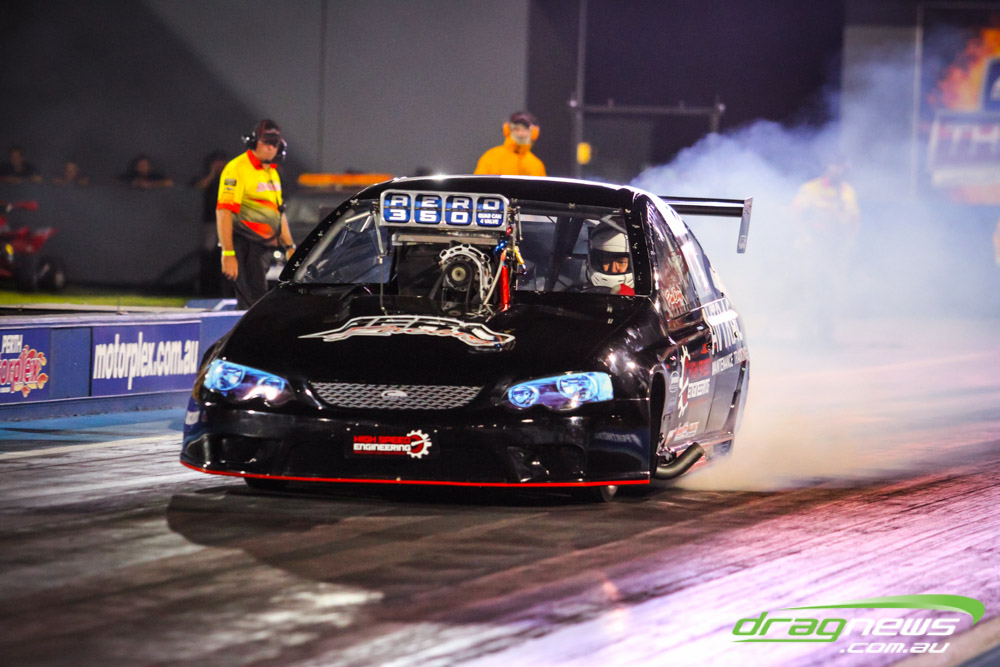 Darren Morgan put in two consistent runs with the AEG Top Fuel dragster to lead that field going into race day. Morgan’s 4.748 at 504kmh held off a 4.89 from Wayne Newby and a 4.91 from Damien Harris, while Mark Sheehan struggled on two runs with engine dramas, settling for a best of 5.265.