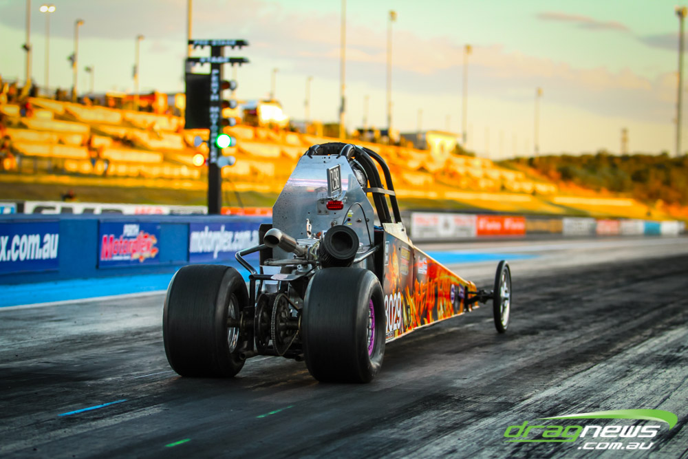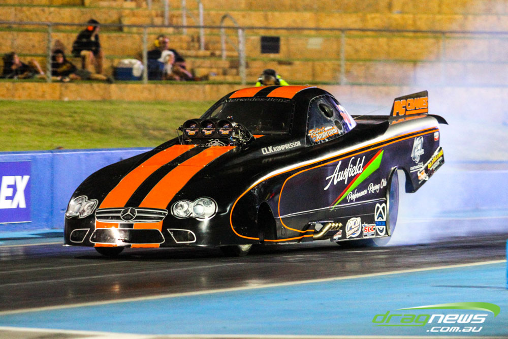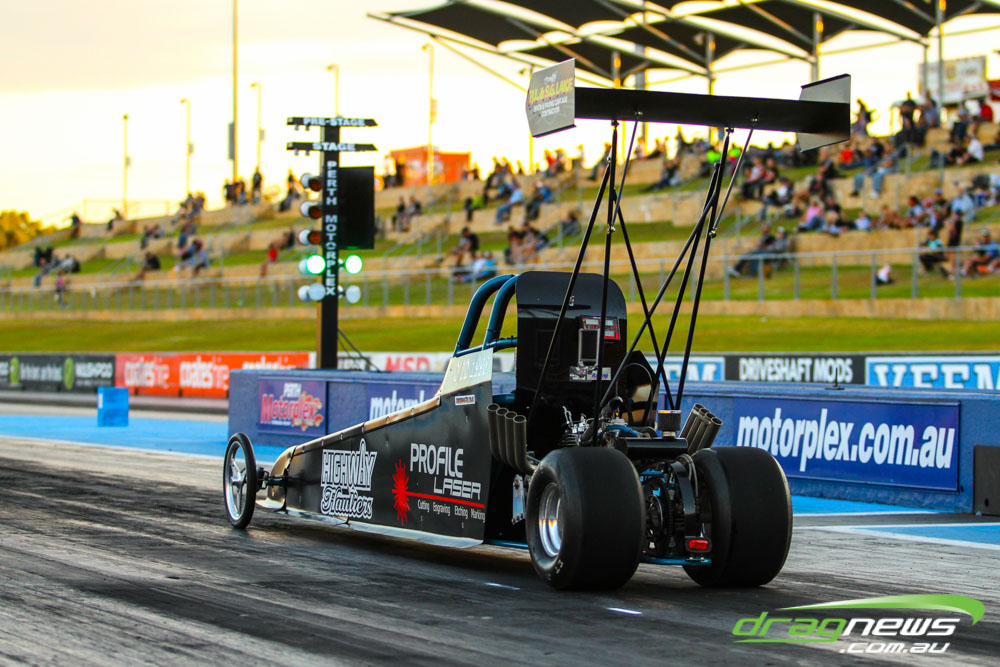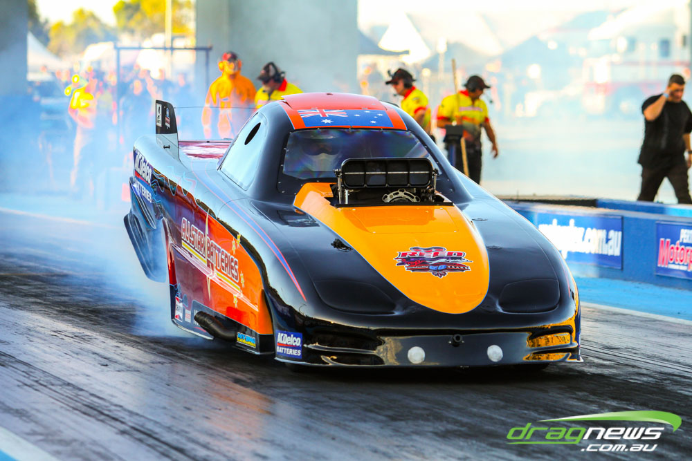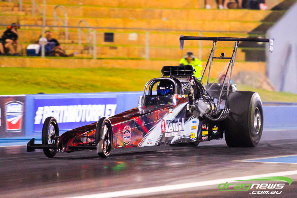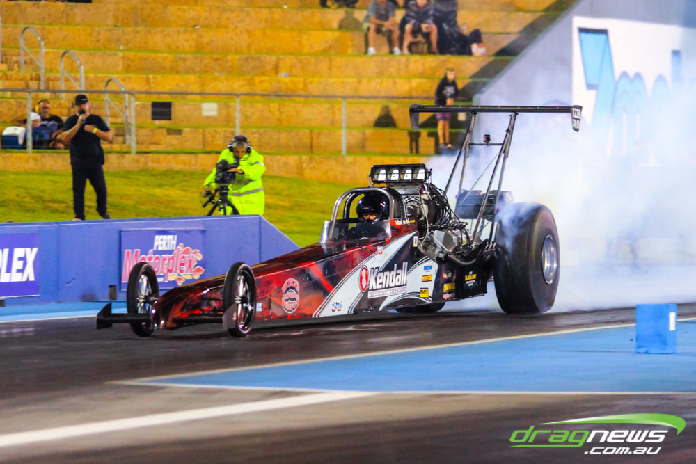The action resumes at Perth Motorplex today with sportsman qualifying from 12pm, with the feature program including Top Fuel eliminations commencing from 6pm.