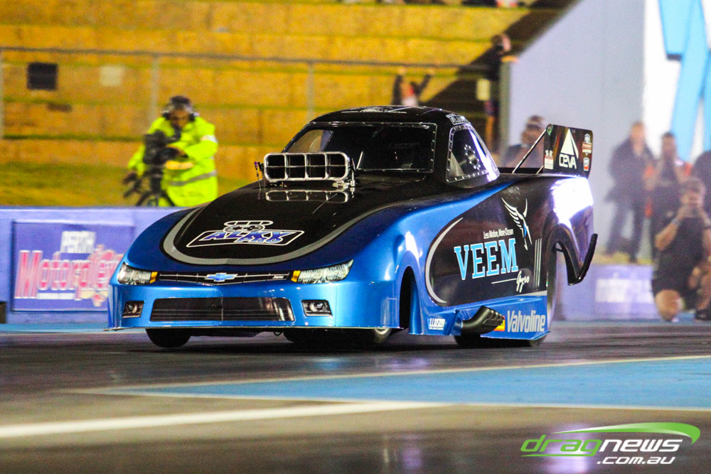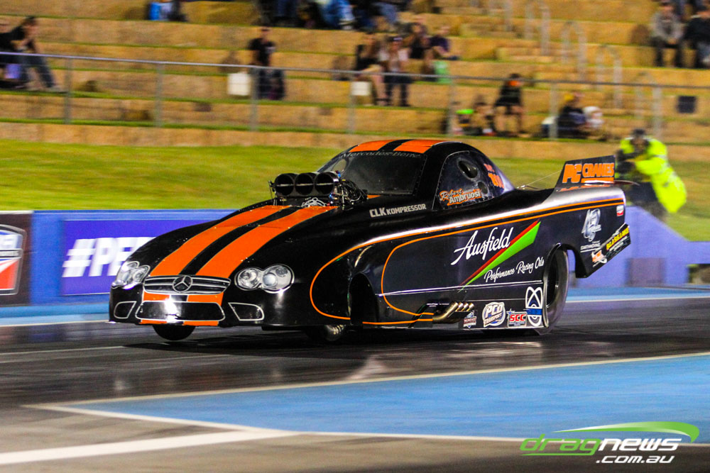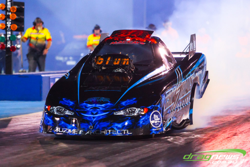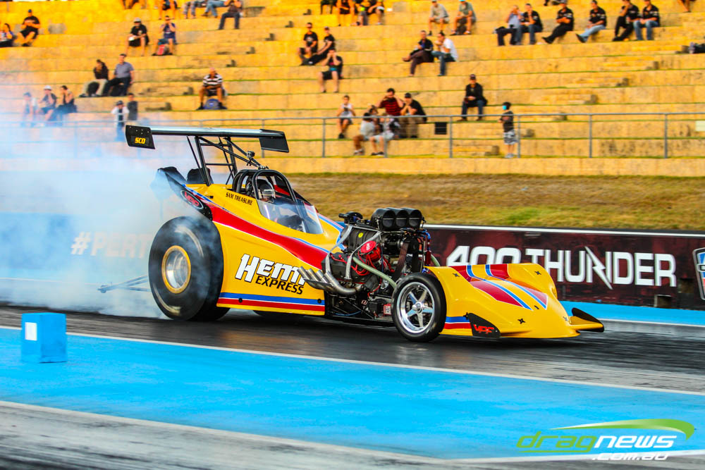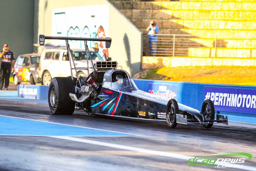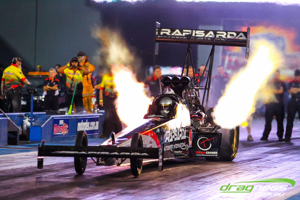 The action resumes at Perth Motorplex today with sportsman qualifying from 12pm, with the feature program including Top Fuel eliminations commencing from 6pm.